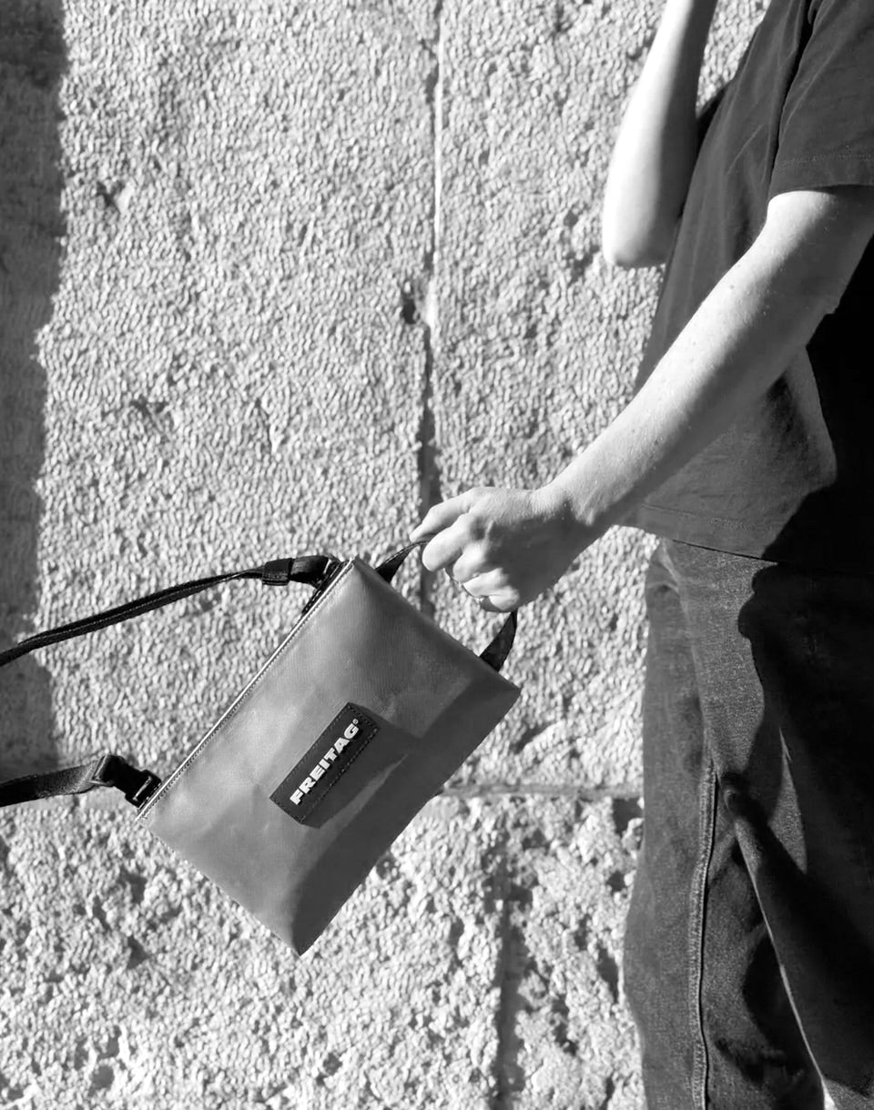 FREITAG F272 Eddie - stylish and practical crossbody bag made from used truck sails. The flat format, clever zoning and extremely durable material make it an everyday partner.