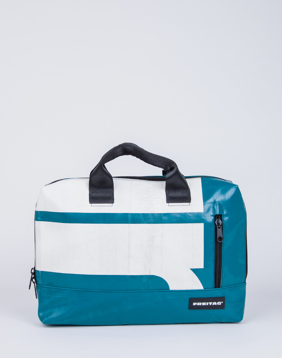 FREITAG F304 Moss - un sac pour ordinateur portable suisse unique fabriqué à partir de bâches de camion, de ceintures de sécurité et de chambres à air de vélo usagées.