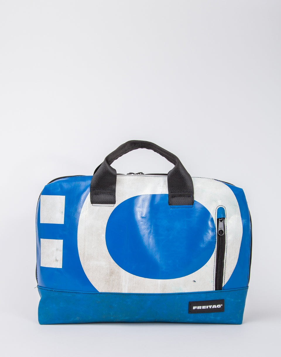 Freitag F304 MOSS - Un sac d'ordinateur portable suisse unique à base de bâches de camion usagées, de ceintures de sécurité et de tubes à vélo.