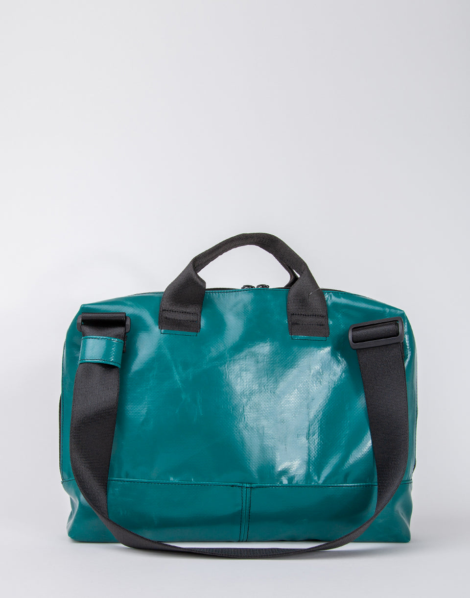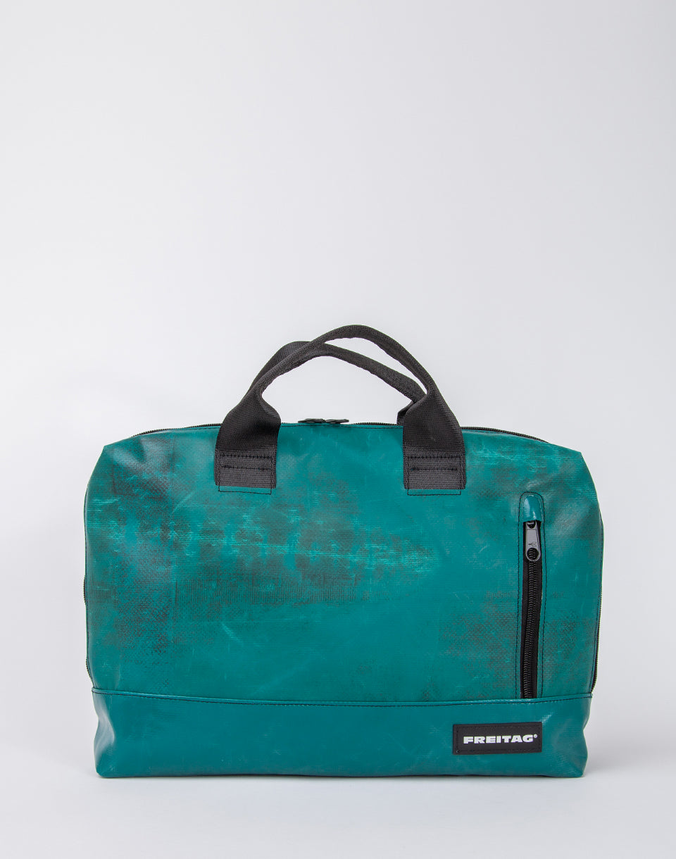 Freitag F304 MOSS - Un sac d'ordinateur portable suisse unique à base de bâches de camion usagées, de ceintures de sécurité et de tubes à vélo.