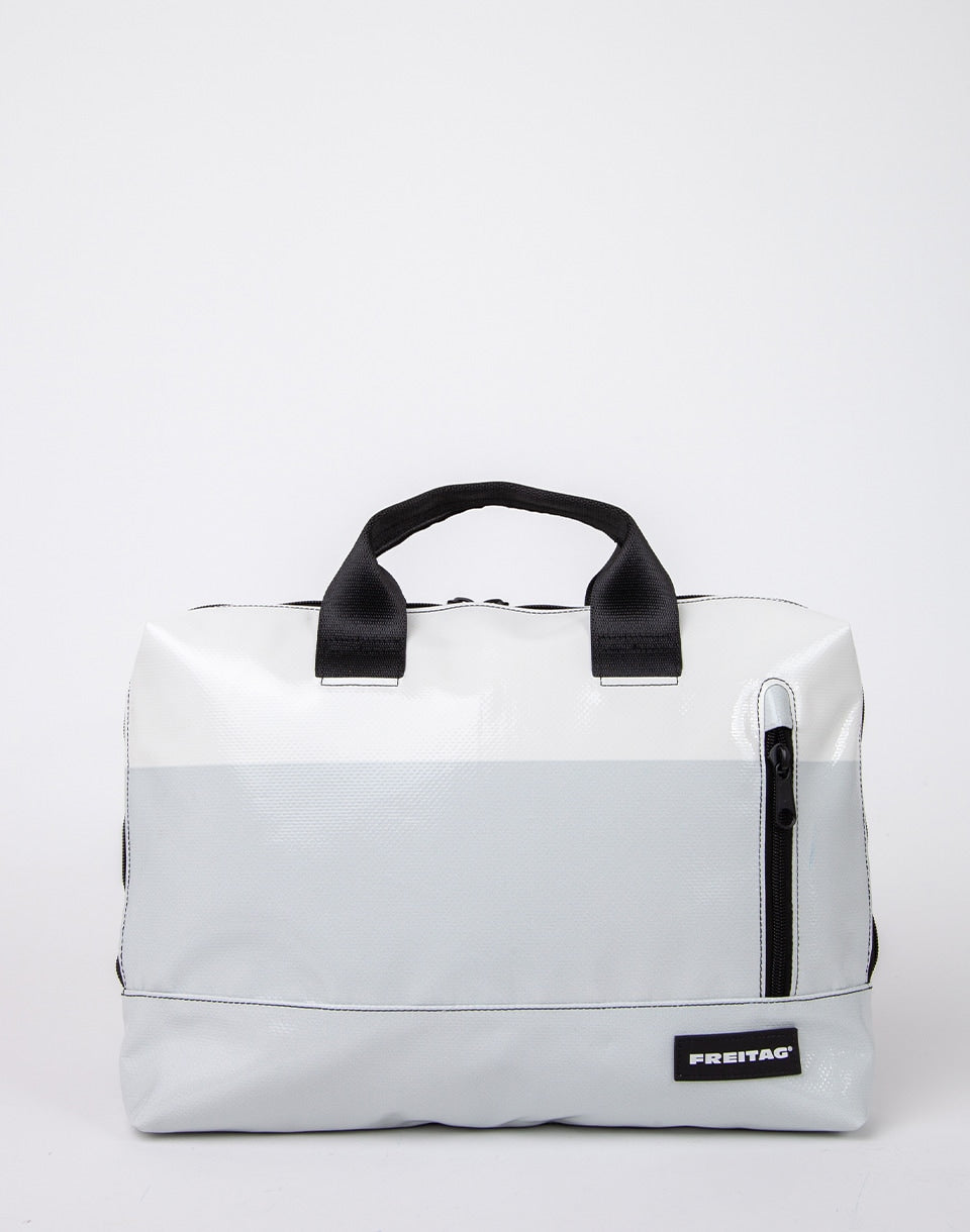 Freitag F304 MOSS - Un sac d'ordinateur portable suisse unique à base de bâches de camion usagées, de ceintures de sécurité et de tubes à vélo.