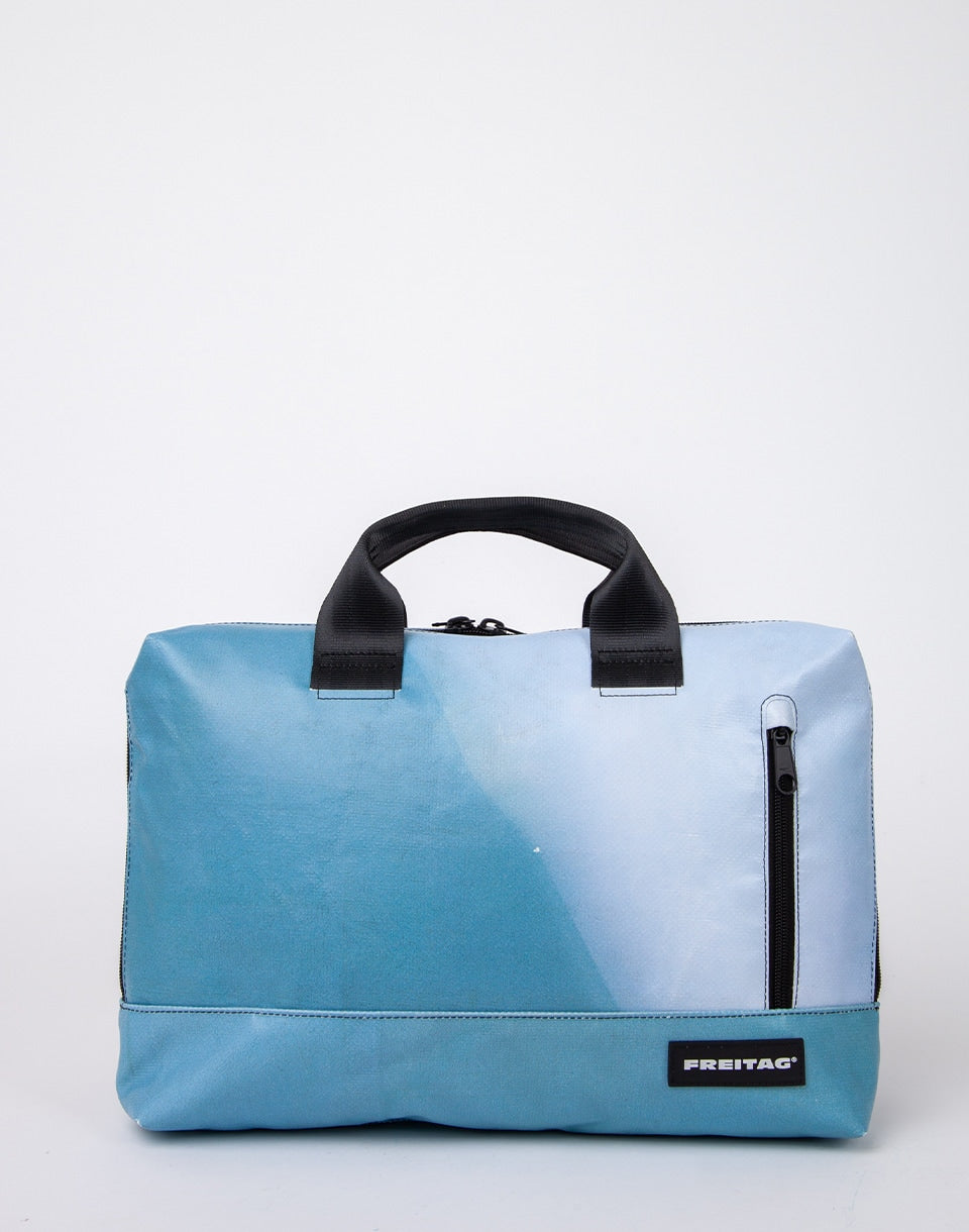 Freitag F304 MOSS - Un sac d'ordinateur portable suisse unique à base de bâches de camion usagées, de ceintures de sécurité et de tubes à vélo.