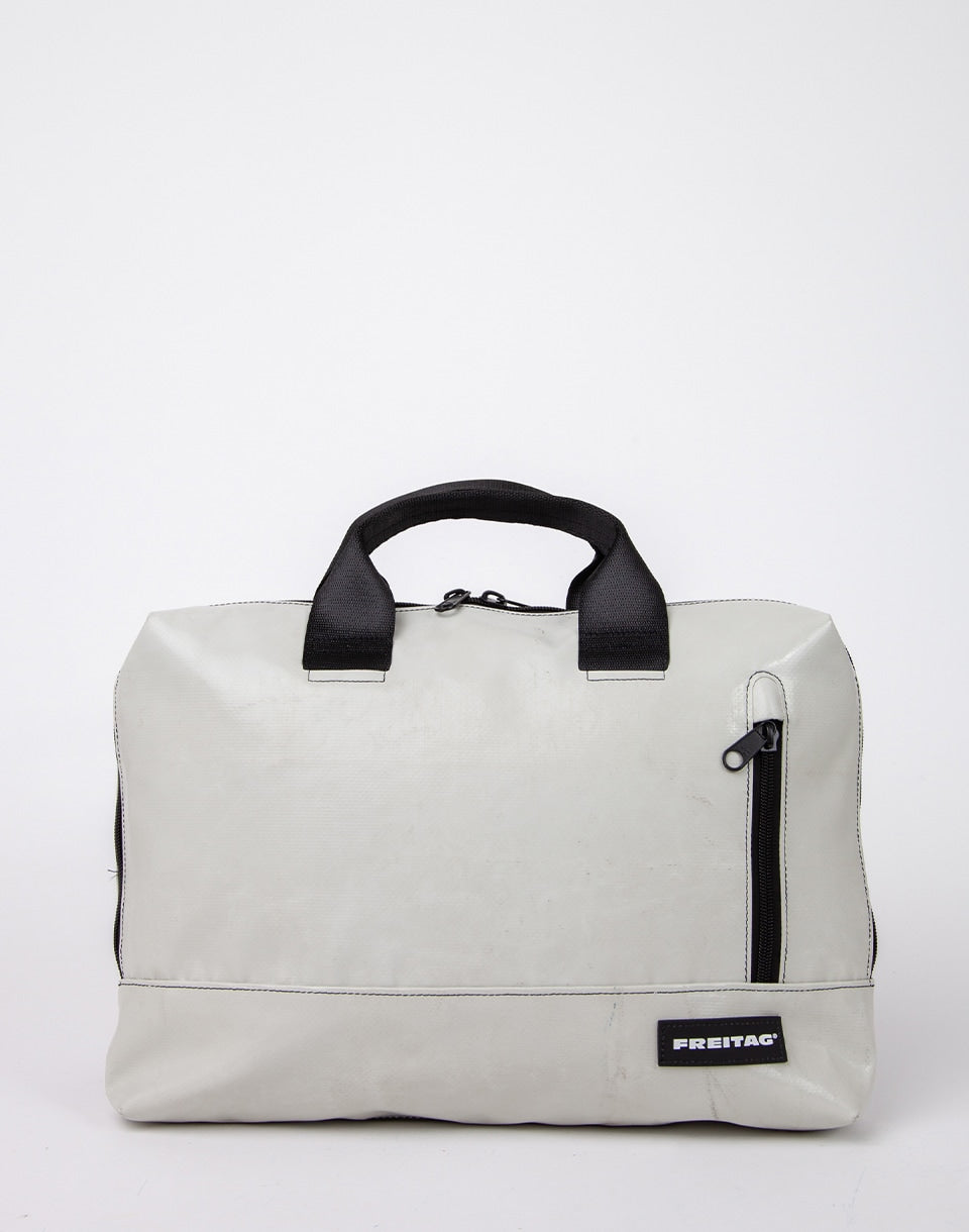 Freitag F304 MOSS - Un sac d'ordinateur portable suisse unique à base de bâches de camion usagées, de ceintures de sécurité et de tubes à vélo.