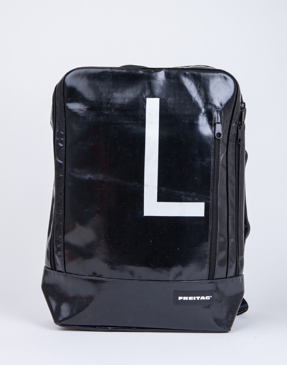 FREITAG F306 Hazzard - sac à dos suisse coupé et cousu à la main à partir de bâches de camion et de ceintures de sécurité usagées.
