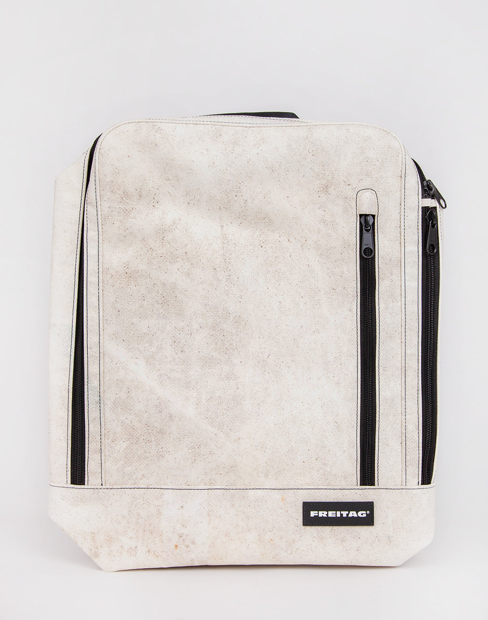 FREITAG F306 Hazzard - sac à dos suisse coupé et cousu à la main à partir de bâches de camion et de ceintures de sécurité usagées.