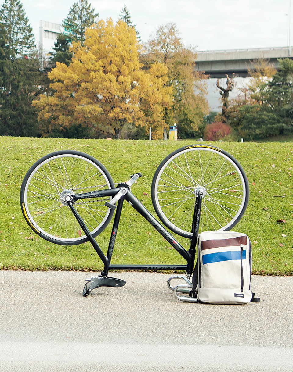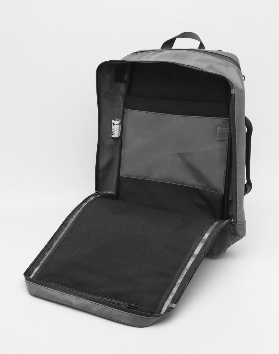 FREITAG F306 Hazzard - hand-cut and sewn Swiss backpack made from used truck tarps and seat belts.