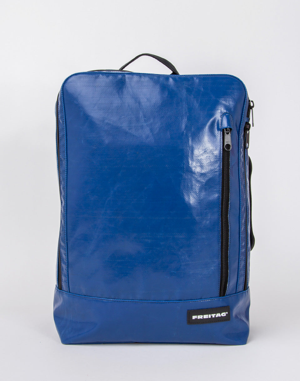 Freitag F306 Hazzard - Sac à dos suisse coupé à la main et cousu fabriqué à partir de bâches de camion et de ceinture de sécurité d'occasion.
