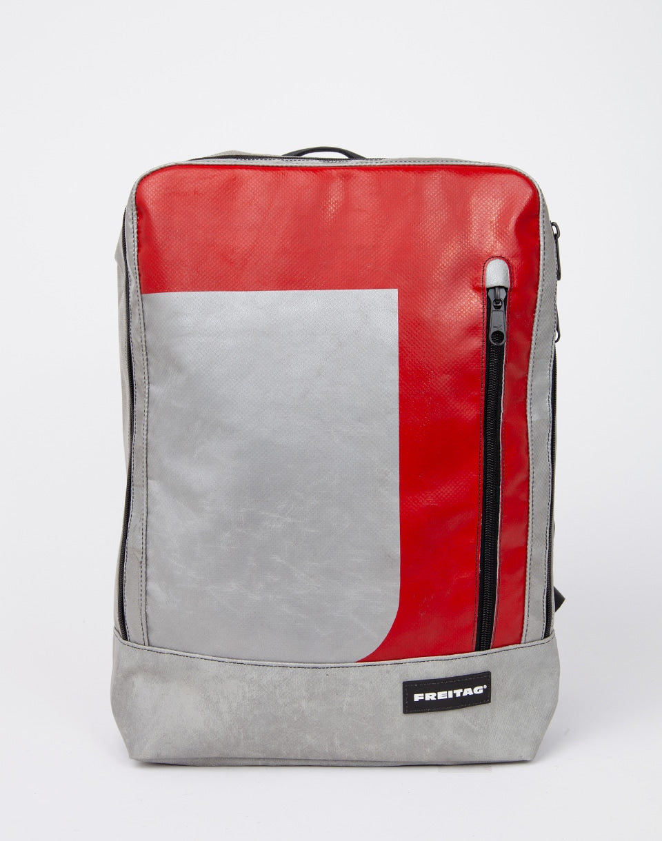 Freitag F306 Hazzard - Sac à dos suisse coupé à la main et cousu fabriqué à partir de bâches de camion et de ceinture de sécurité d'occasion.