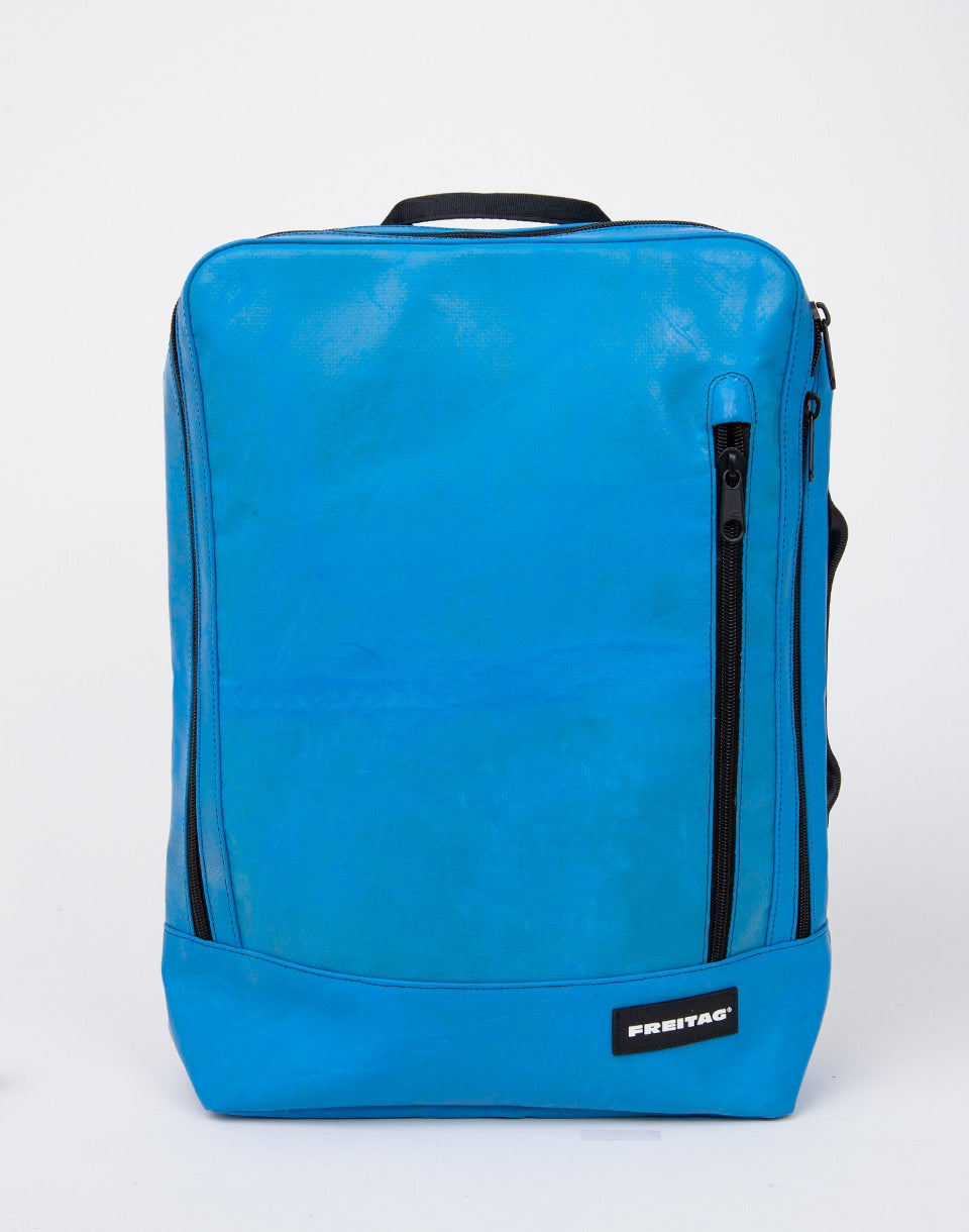 Freitag F306 Hazzard - Sac à dos suisse coupé à la main et cousu fabriqué à partir de bâches de camion et de ceinture de sécurité d'occasion.