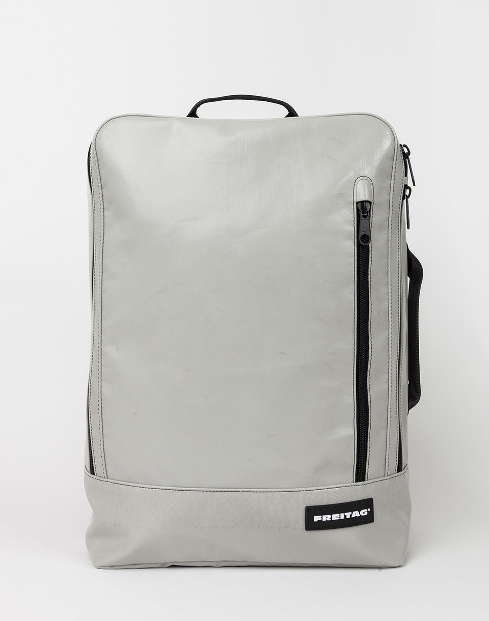 Freitag F306 Hazzard - Sac à dos suisse coupé à la main et cousu fabriqué à partir de bâches de camion et de ceinture de sécurité d'occasion.