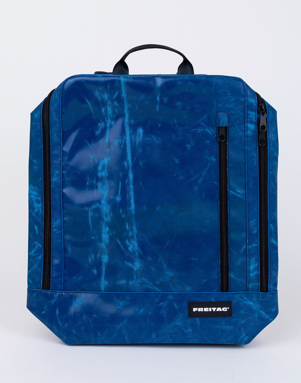 Freitag F306 Hazzard - Sac à dos suisse coupé à la main et cousu fabriqué à partir de bâches de camion et de ceinture de sécurité d'occasion.