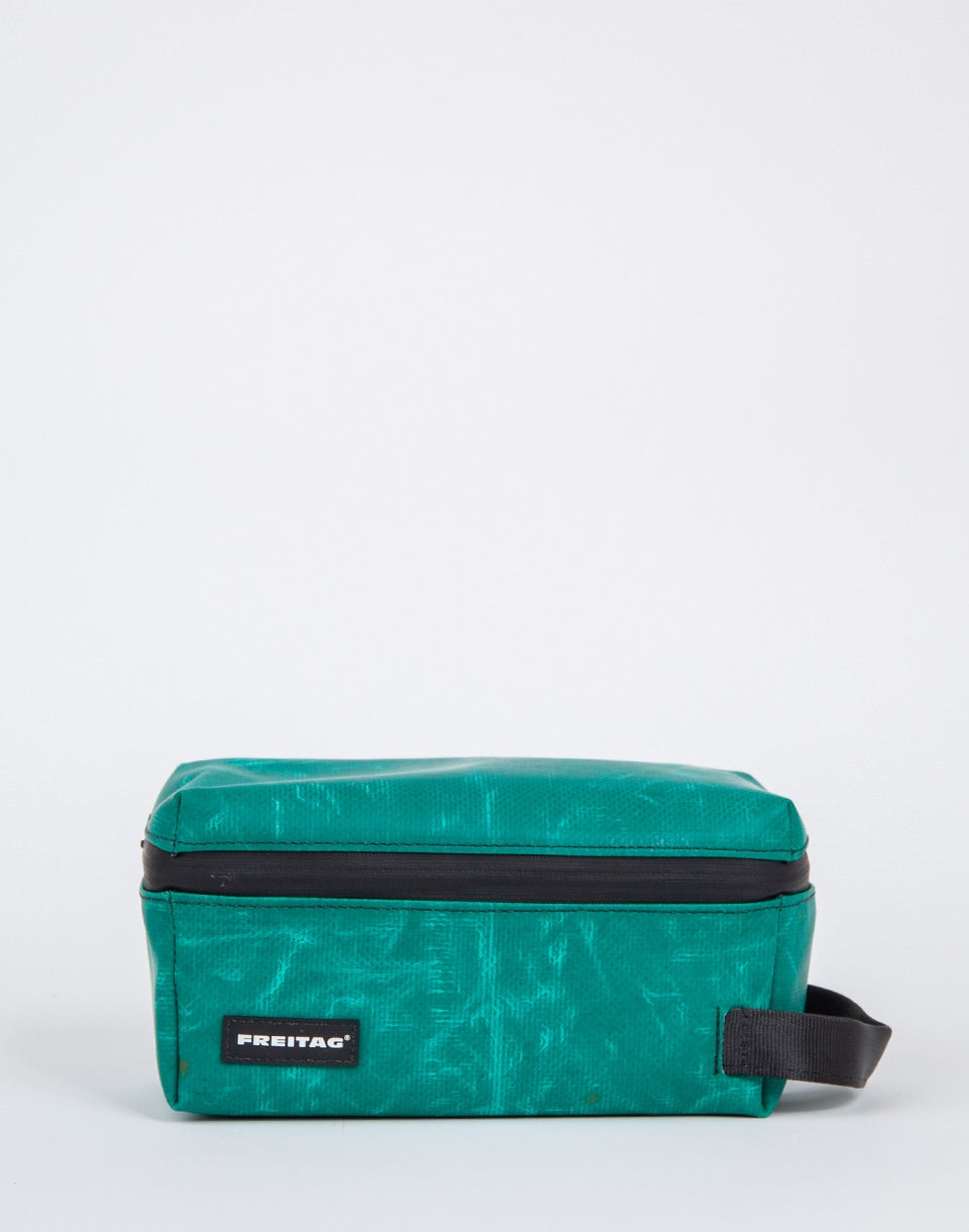 FREITAG F36 Wayne – Trousse de toilette de taille moyenne fabriquée à partir de bâches de camion usagées et de ceintures de sécurité recyclées. Grâce à ses compartiments pratiques, elle sera un compagnon de voyage idéal.