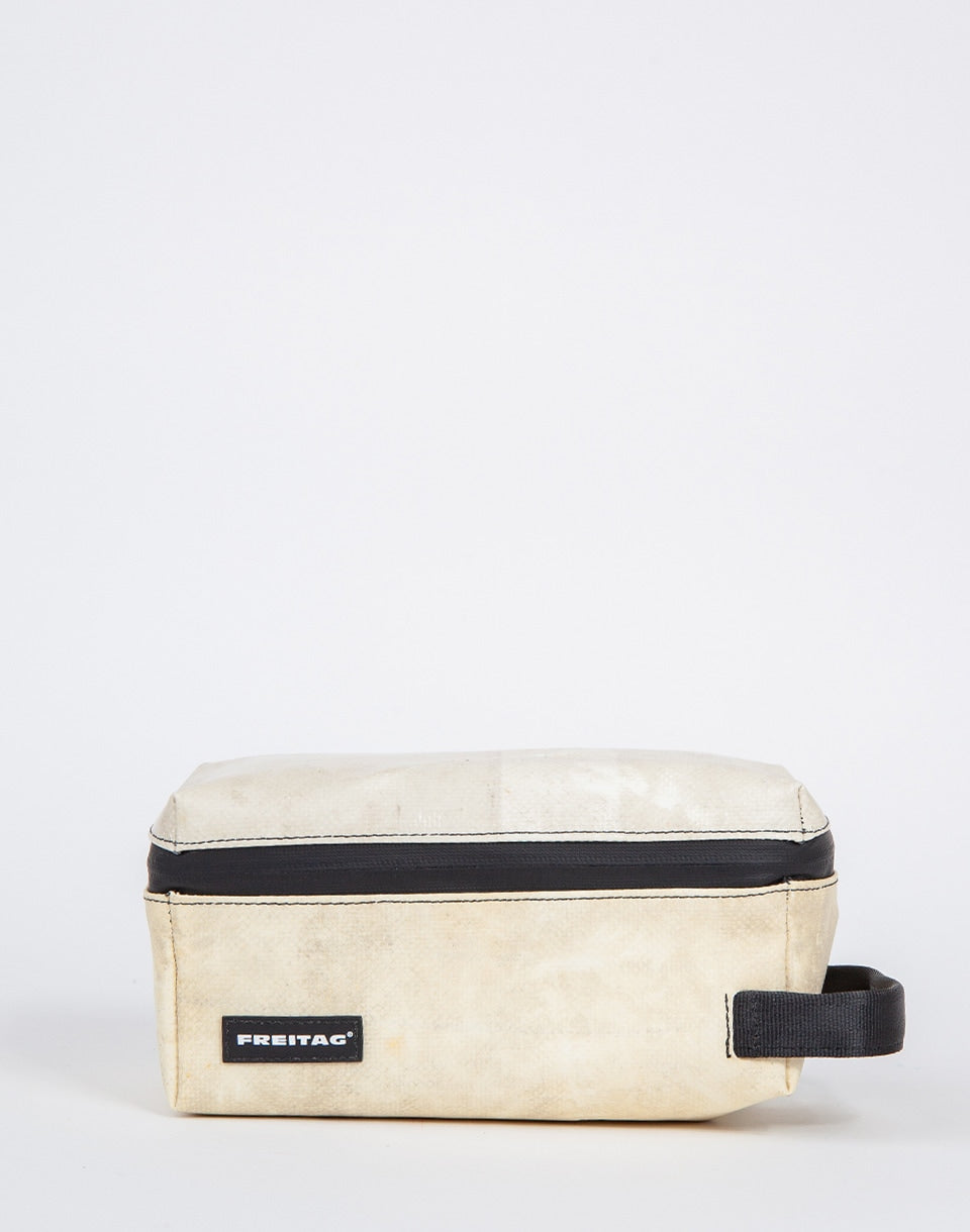 FREITAG F36 Wayne – Trousse de toilette de taille moyenne fabriquée à partir de bâches de camion usagées et de ceintures de sécurité recyclées. Grâce à ses compartiments pratiques, elle sera un compagnon de voyage idéal.