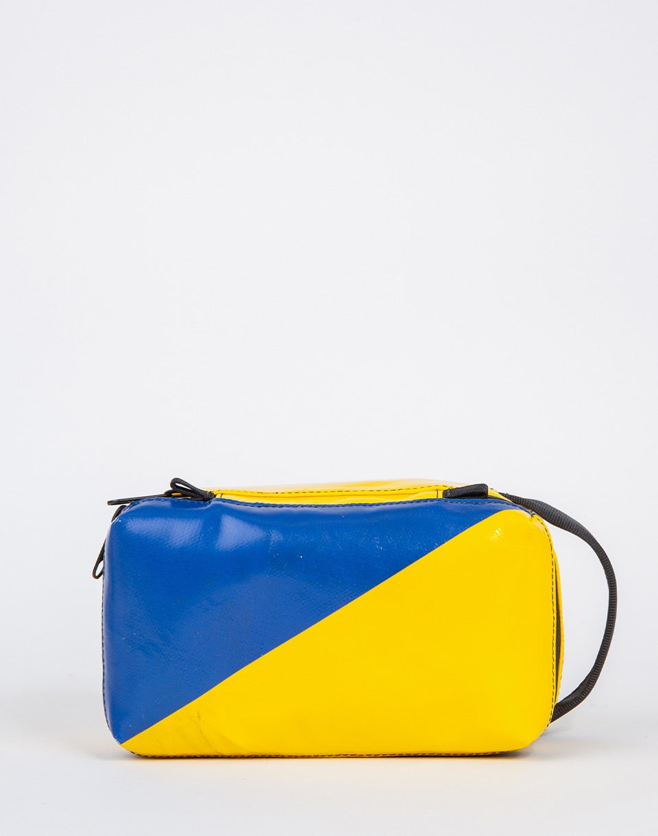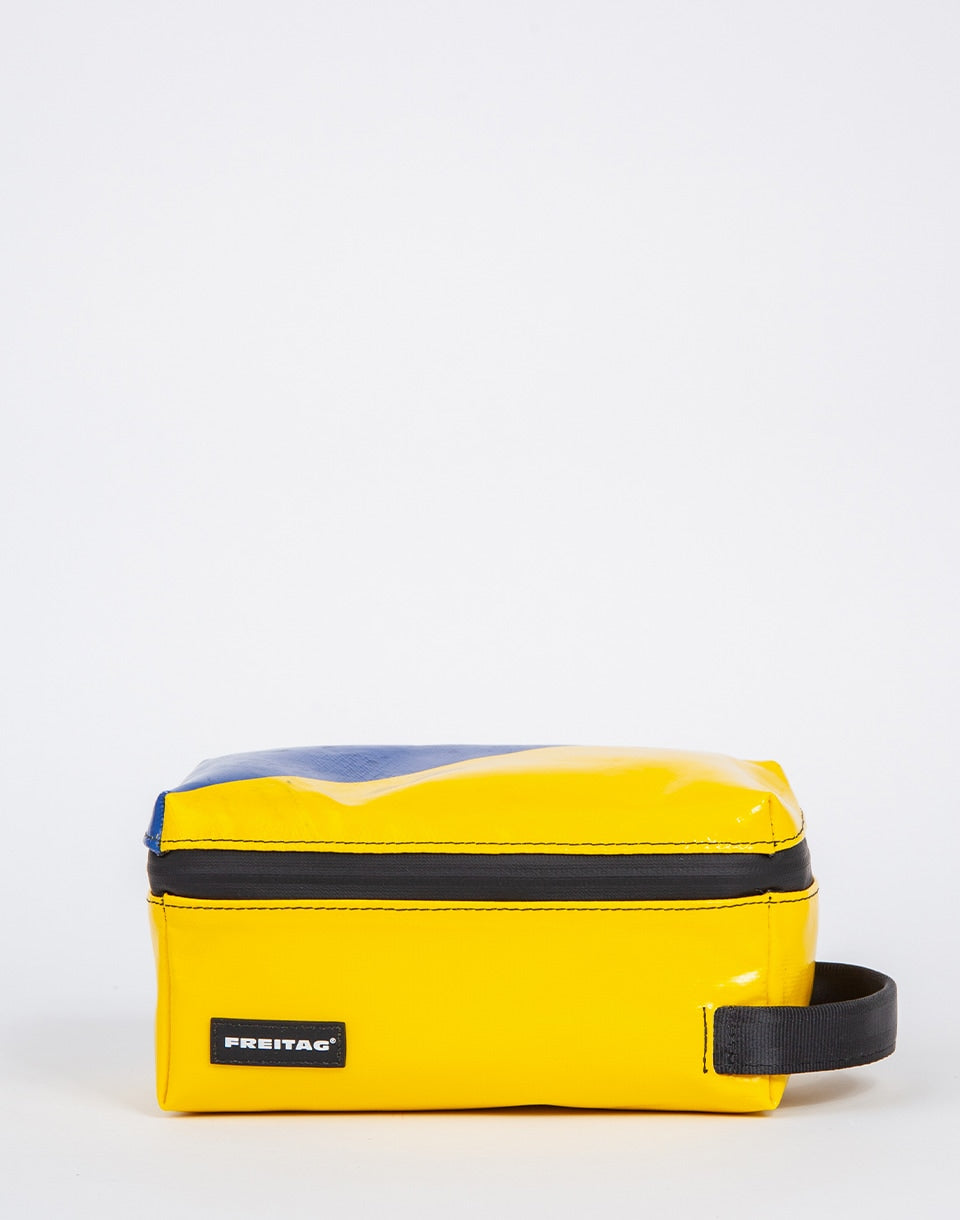 FREITAG F36 Wayne – Trousse de toilette de taille moyenne fabriquée à partir de bâches de camion usagées et de ceintures de sécurité recyclées. Grâce à ses compartiments pratiques, elle sera un compagnon de voyage idéal.