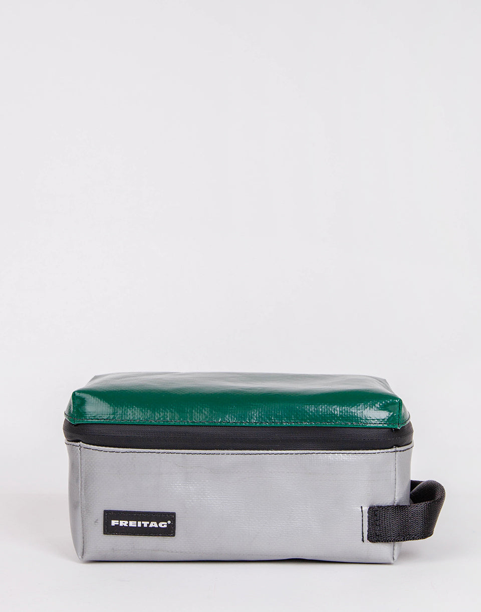 FREITAG F36 Wayne – Trousse de toilette de taille moyenne fabriquée à partir de bâches de camion usagées et de ceintures de sécurité recyclées. Grâce à ses compartiments pratiques, elle sera un compagnon de voyage idéal.