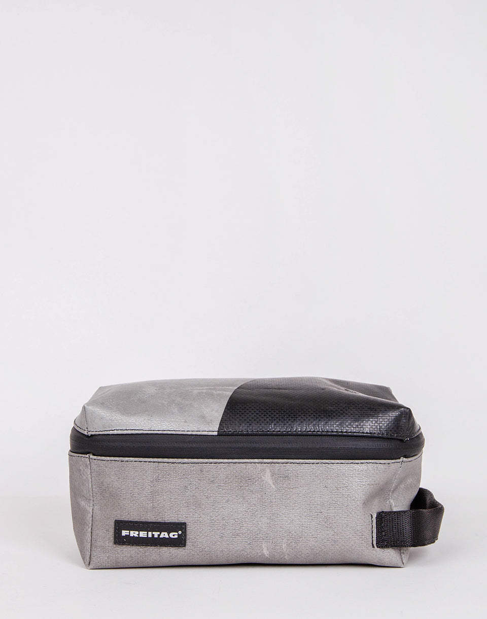 FREITAG F36 Wayne – Trousse de toilette de taille moyenne fabriquée à partir de bâches de camion usagées et de ceintures de sécurité recyclées. Grâce à ses compartiments pratiques, elle sera un compagnon de voyage idéal.