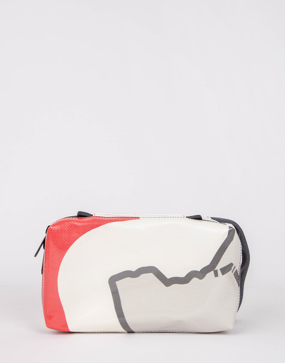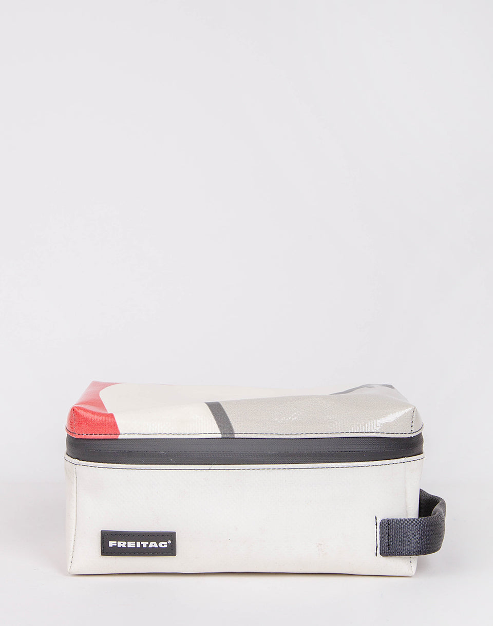 FREITAG F36 Wayne – Trousse de toilette de taille moyenne fabriquée à partir de bâches de camion usagées et de ceintures de sécurité recyclées. Grâce à ses compartiments pratiques, elle sera un compagnon de voyage idéal.