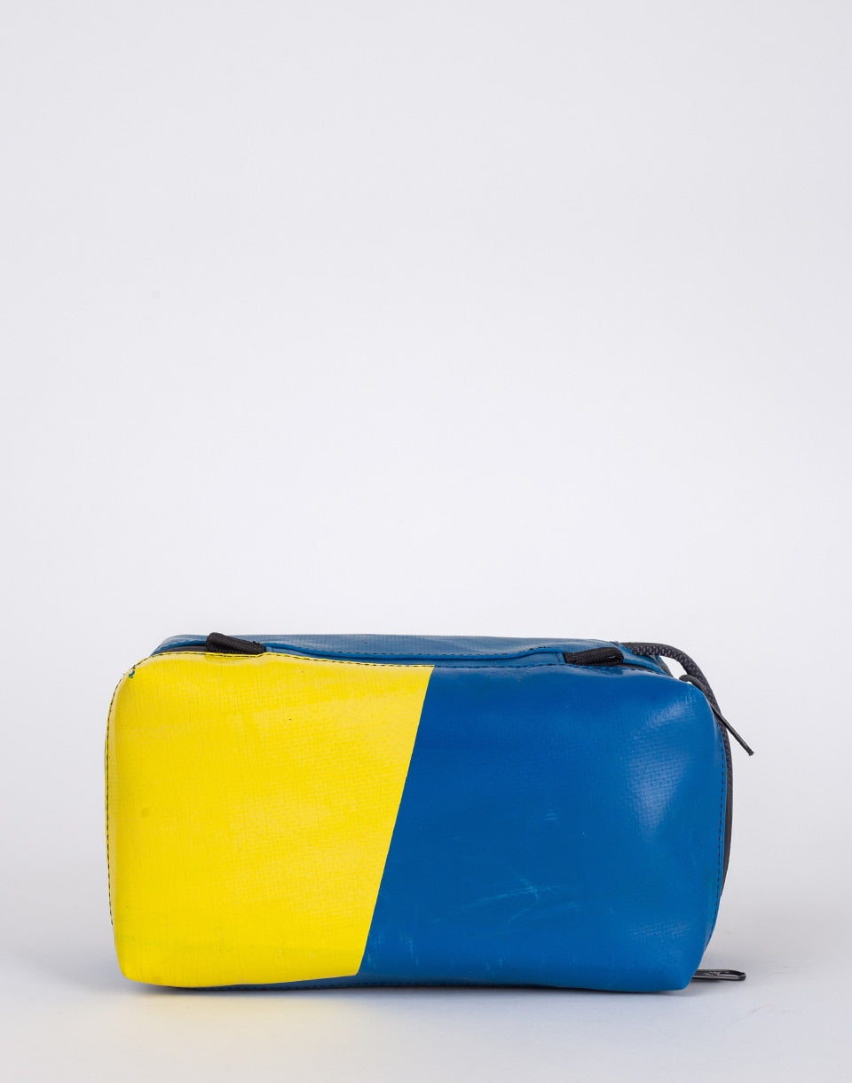 FREITAG F36 Wayne - medium-sized cosmetic bag made from used truck tarps and upcycled seat belts. Thanks to practical compartments, it will be an ideal travel partner.