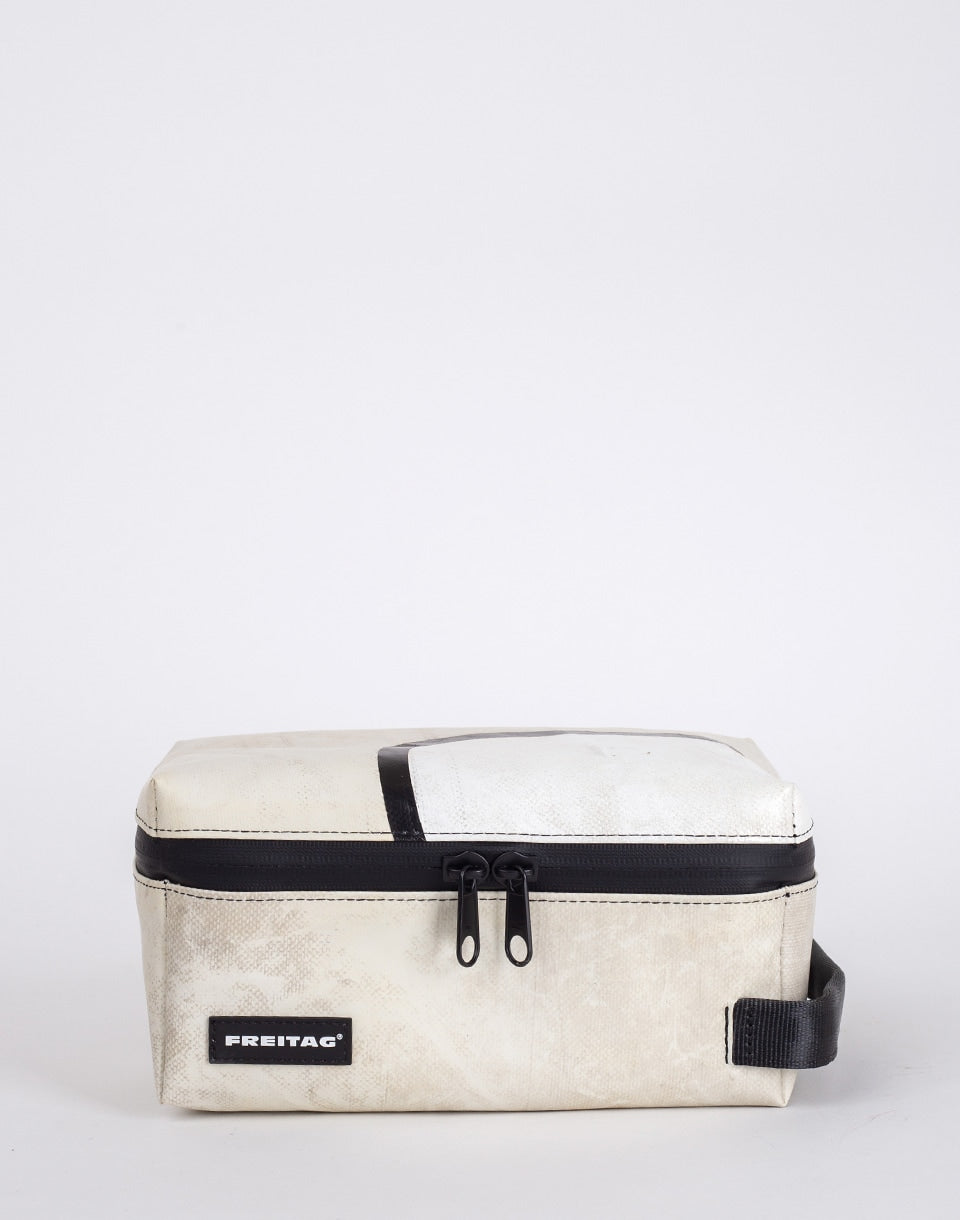 FREITAG F36 Wayne - medium-sized cosmetic bag made from used truck tarps and upcycled seat belts. Thanks to practical compartments, it will be an ideal travel partner.