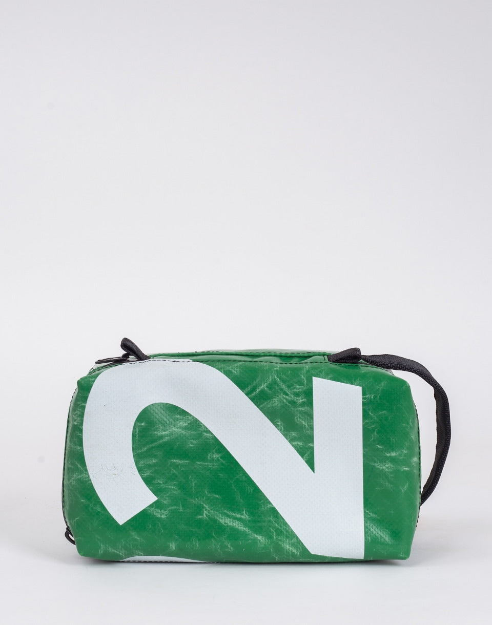 FREITAG F36 Wayne - medium-sized cosmetic bag made from used truck tarps and upcycled seat belts. Thanks to practical compartments, it will be an ideal travel partner.