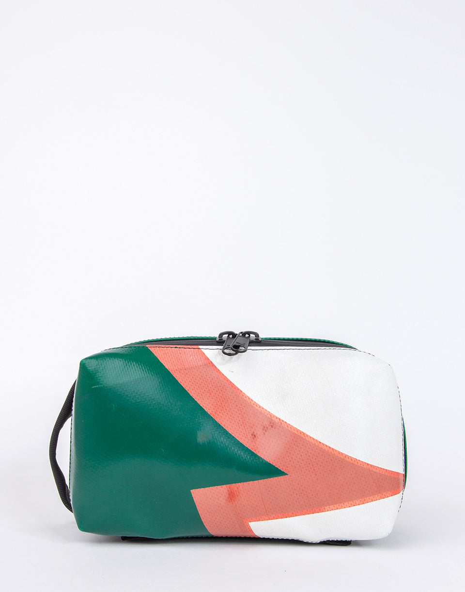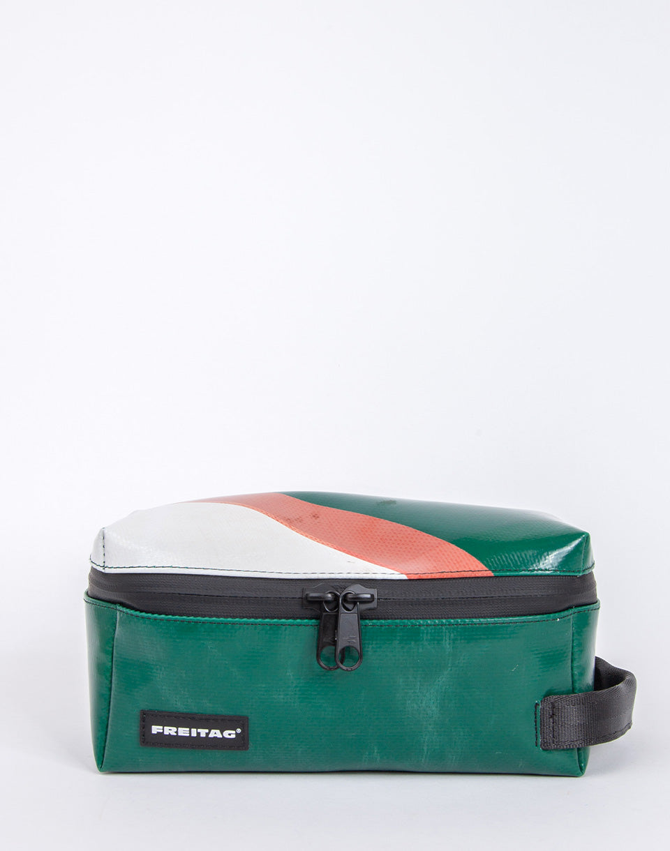 Freitag F36 Wayne - Sac de cosmétique de taille moyenne fabriqué à partir de bâches de camion d'occasion et de ceintures de sécurité recyclées. Grâce aux compartiments pratiques, ce sera un partenaire de voyage idéal.