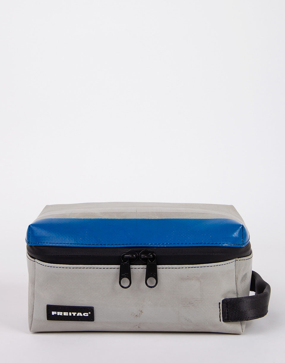 Freitag F36 Wayne - Sac de cosmétique de taille moyenne à base de bâches de camion d'occasion et de ceintures de sécurité recyclées. Grâce aux compartiments pratiques, ce sera un partenaire de voyage idéal.