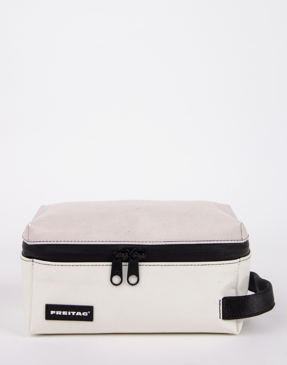 Freitag F36 Wayne - Sac de cosmétique de taille moyenne à base de bâches de camion d'occasion et de ceintures de sécurité recyclées. Grâce aux compartiments pratiques, ce sera un partenaire de voyage idéal.
