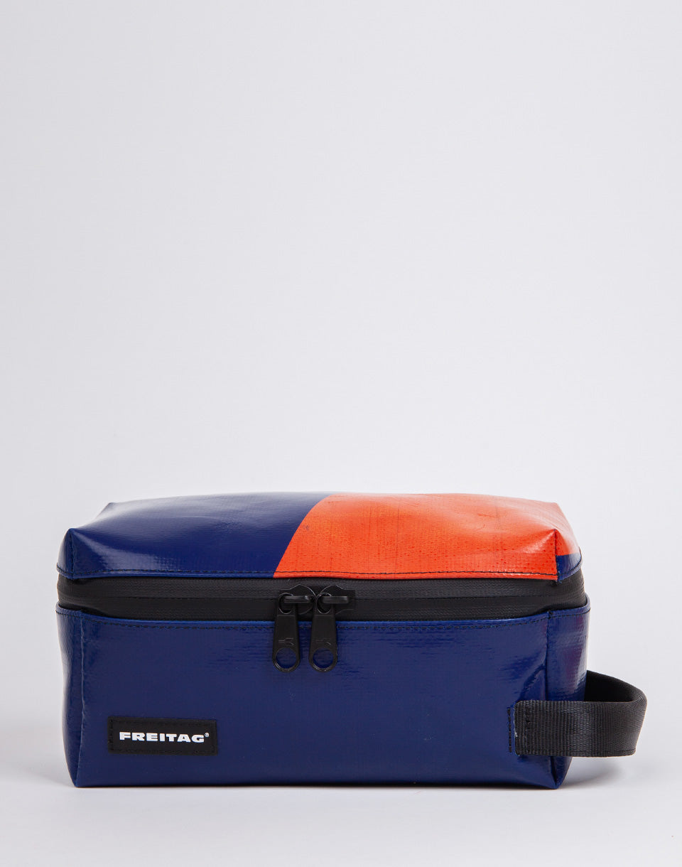 Freitag F36 Wayne - Sac de cosmétique de taille moyenne à base de bâches de camion d'occasion et de ceintures de sécurité recyclées. Grâce aux compartiments pratiques, ce sera un partenaire de voyage idéal.
