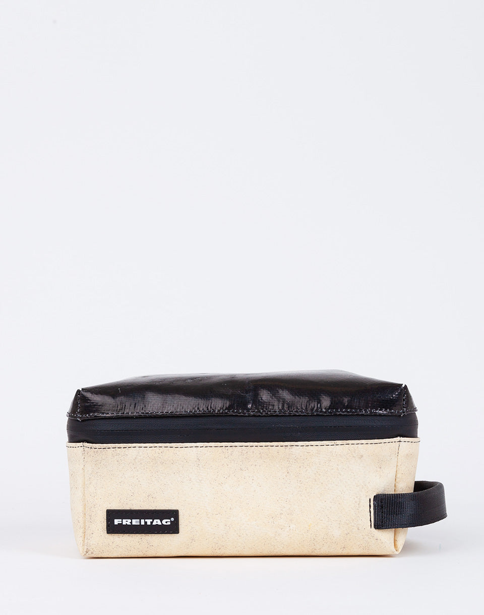 Freitag F36 Wayne - Sac de cosmétique de taille moyenne à base de bâches de camion d'occasion et de ceintures de sécurité recyclées. Grâce aux compartiments pratiques, ce sera un partenaire de voyage idéal.