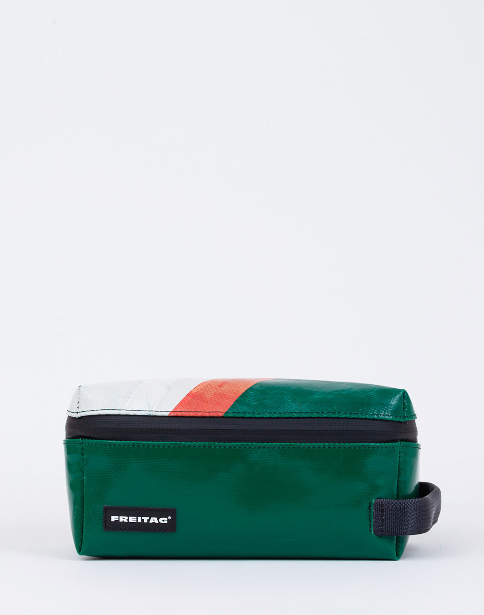 Freitag F36 Wayne - Sac de cosmétique de taille moyenne à base de bâches de camion d'occasion et de ceintures de sécurité recyclées. Grâce aux compartiments pratiques, ce sera un partenaire de voyage idéal.