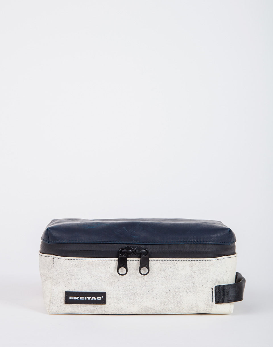 Freitag F36 Wayne - Sac de cosmétique de taille moyenne à base de bâches de camion d'occasion et de ceintures de sécurité recyclées. Grâce aux compartiments pratiques, ce sera un partenaire de voyage idéal.