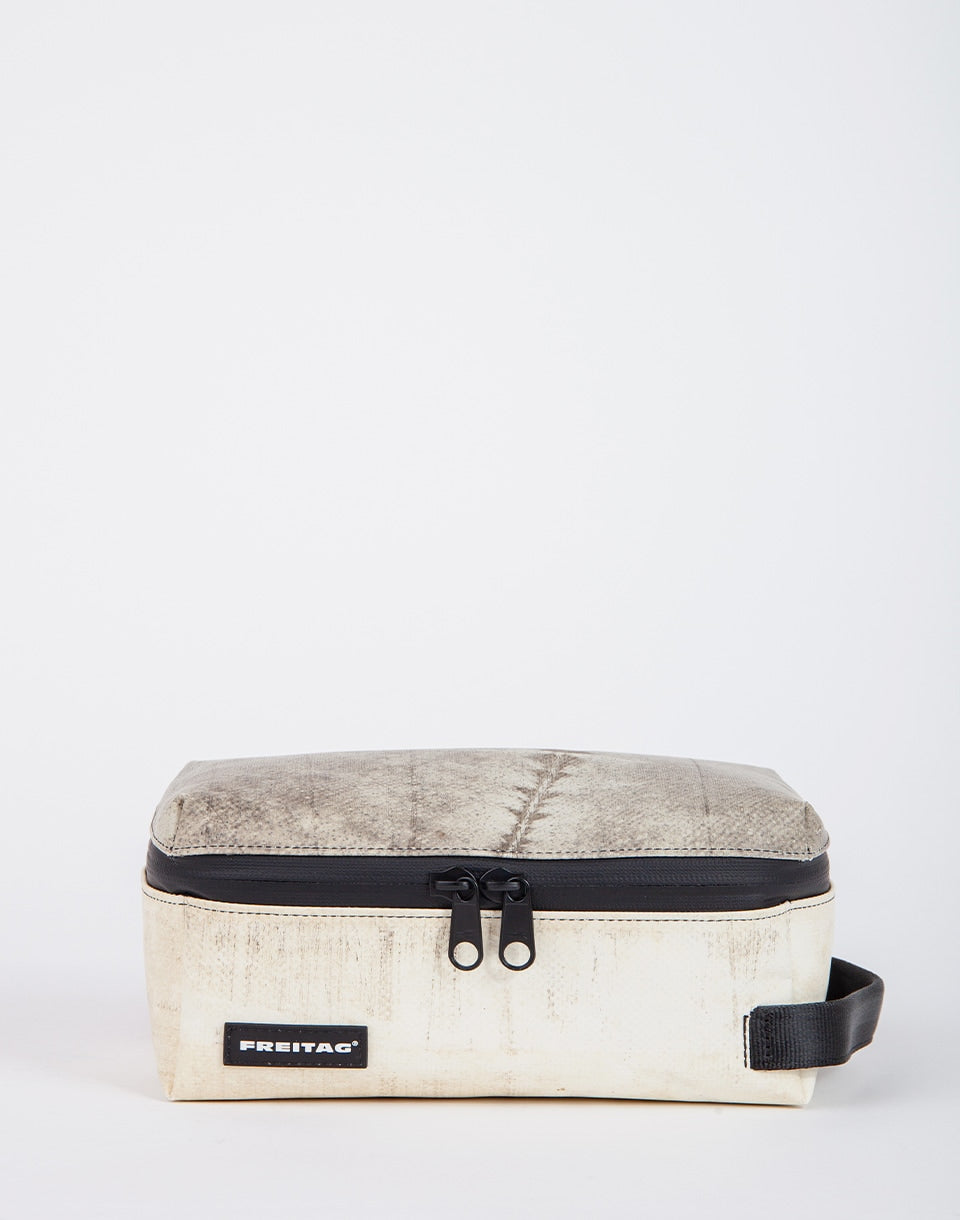 Freitag F36 Wayne - Sac de cosmétique de taille moyenne à base de bâches de camion d'occasion et de ceintures de sécurité recyclées. Grâce aux compartiments pratiques, ce sera un partenaire de voyage idéal.