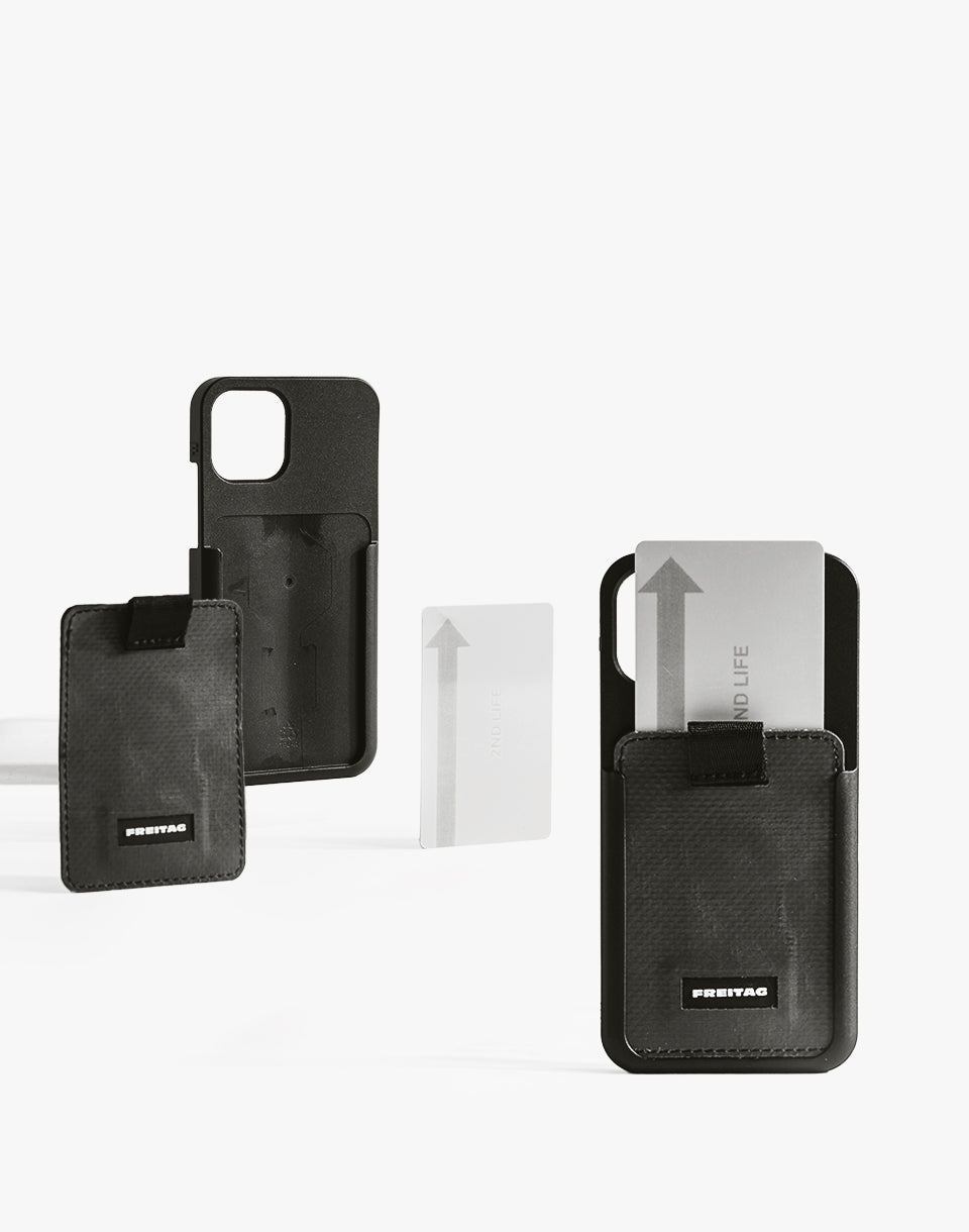 FREITAG F380 Justin - original card holder for FREITAG F385 Circ-Case made from used truck tarps. The card holder will also be compatible with FREITAG next generation iPhone cases.