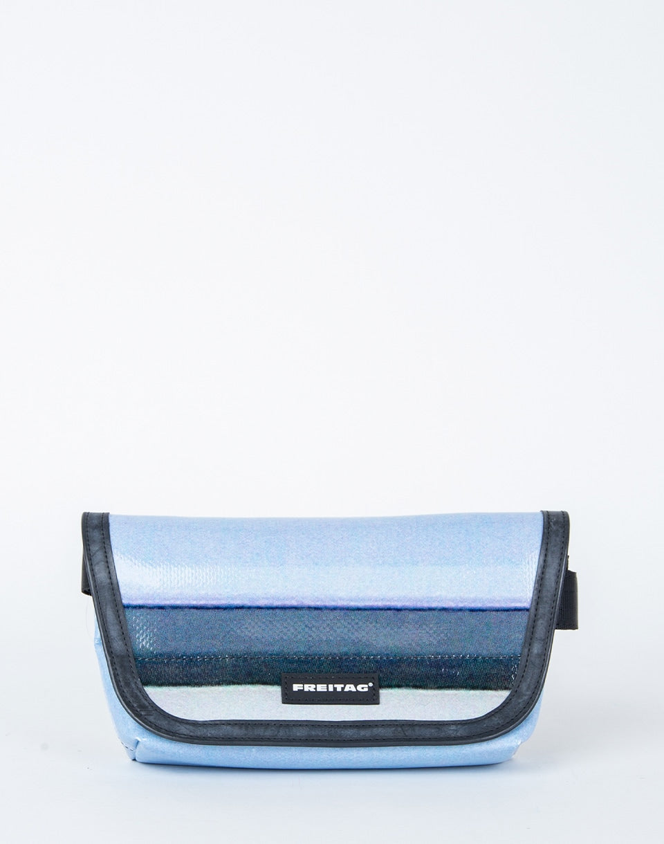 The F40 Jamie is a compact kidney that offers more than meets the eye. The minimalist design hides a practically structured interior, a comfortable shoulder strap and material that will last. Made from upcycled truck tarpaulin - so not only does each piece look different, but each has had its own journey. Just strap it on and go.