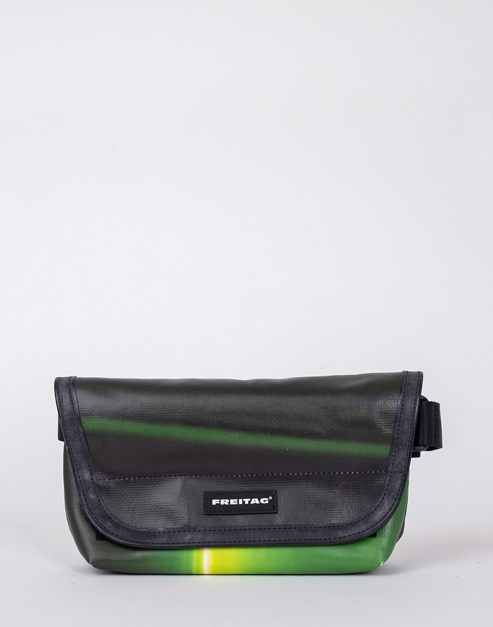 The F40 Jamie is a compact kidney that offers more than meets the eye. The minimalist design hides a practically structured interior, a comfortable shoulder strap and material that will last. Made from upcycled truck tarpaulin - so not only does each piece look different, but each has had its own journey. Just strap it on and go.
