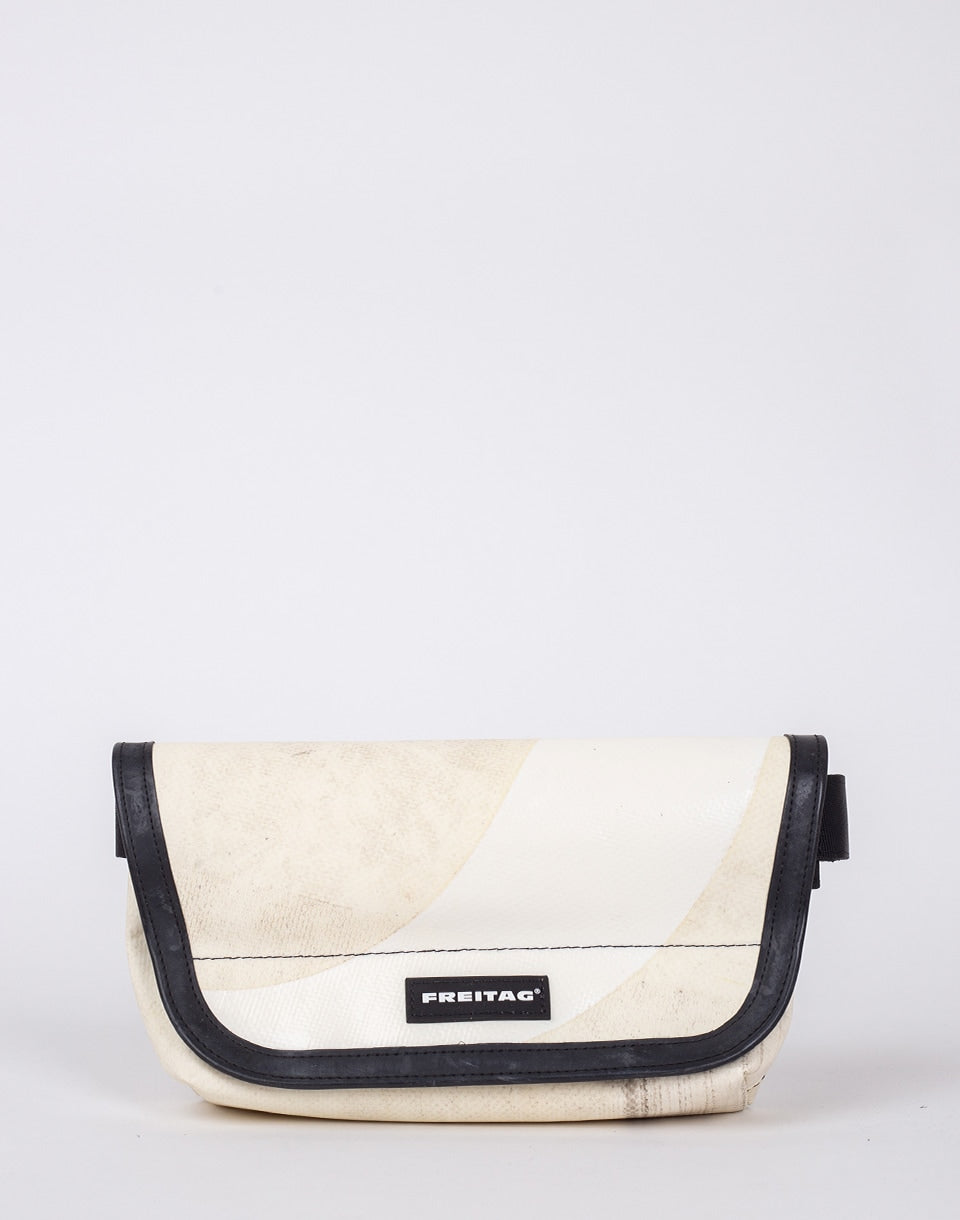 The F40 Jamie is a compact kidney that offers more than meets the eye. The minimalist design hides a practically structured interior, a comfortable shoulder strap and material that will last. Made from upcycled truck tarpaulin - so not only does each piece look different, but each has had its own journey. Just strap it on and go.