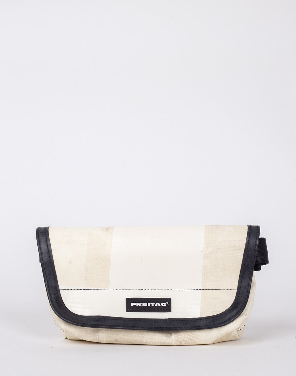 The F40 Jamie is a compact kidney that offers more than meets the eye. The minimalist design hides a practically structured interior, a comfortable shoulder strap and material that will last. Made from upcycled truck tarpaulin - so not only does each piece look different, but each has had its own journey. Just strap it on and go.