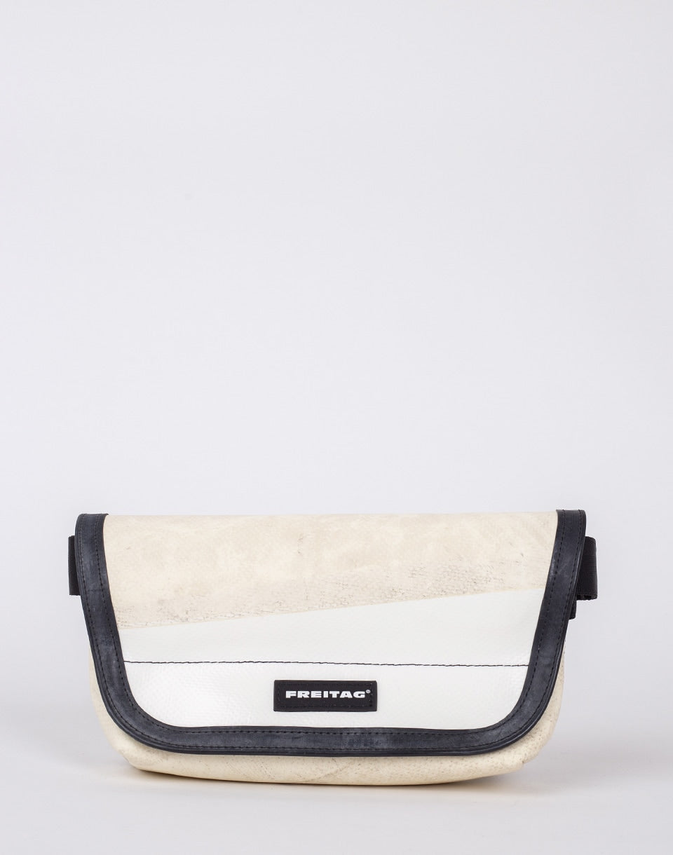 The F40 Jamie is a compact kidney that offers more than meets the eye. The minimalist design hides a practically structured interior, a comfortable shoulder strap and material that will last. Made from upcycled truck tarpaulin - so not only does each piece look different, but each has had its own journey. Just strap it on and go.