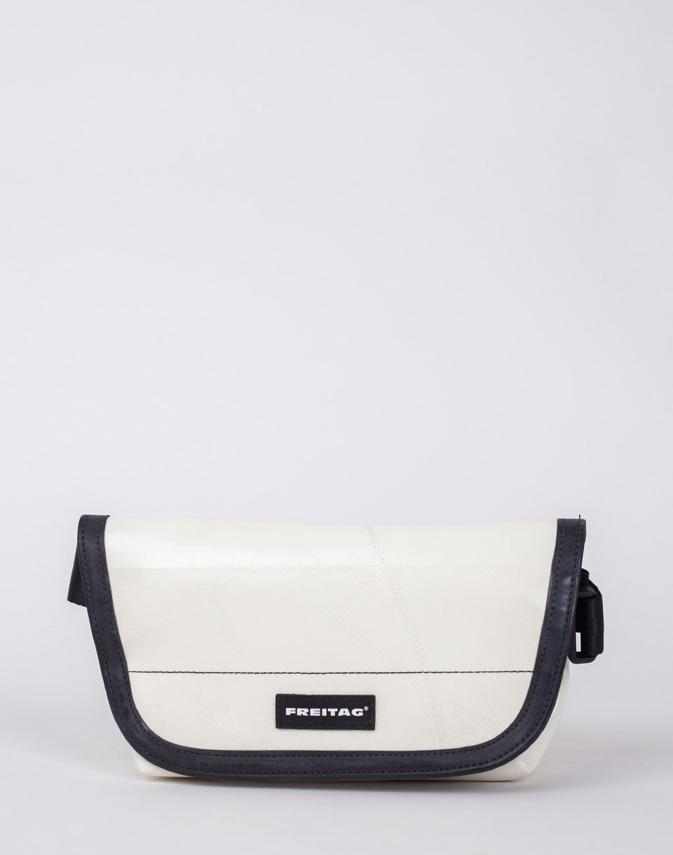 The F40 Jamie is a compact kidney that offers more than meets the eye. The minimalist design hides a practically structured interior, a comfortable shoulder strap and material that will last. Made from upcycled truck tarpaulin - so not only does each piece look different, but each has had its own journey. Just strap it on and go.