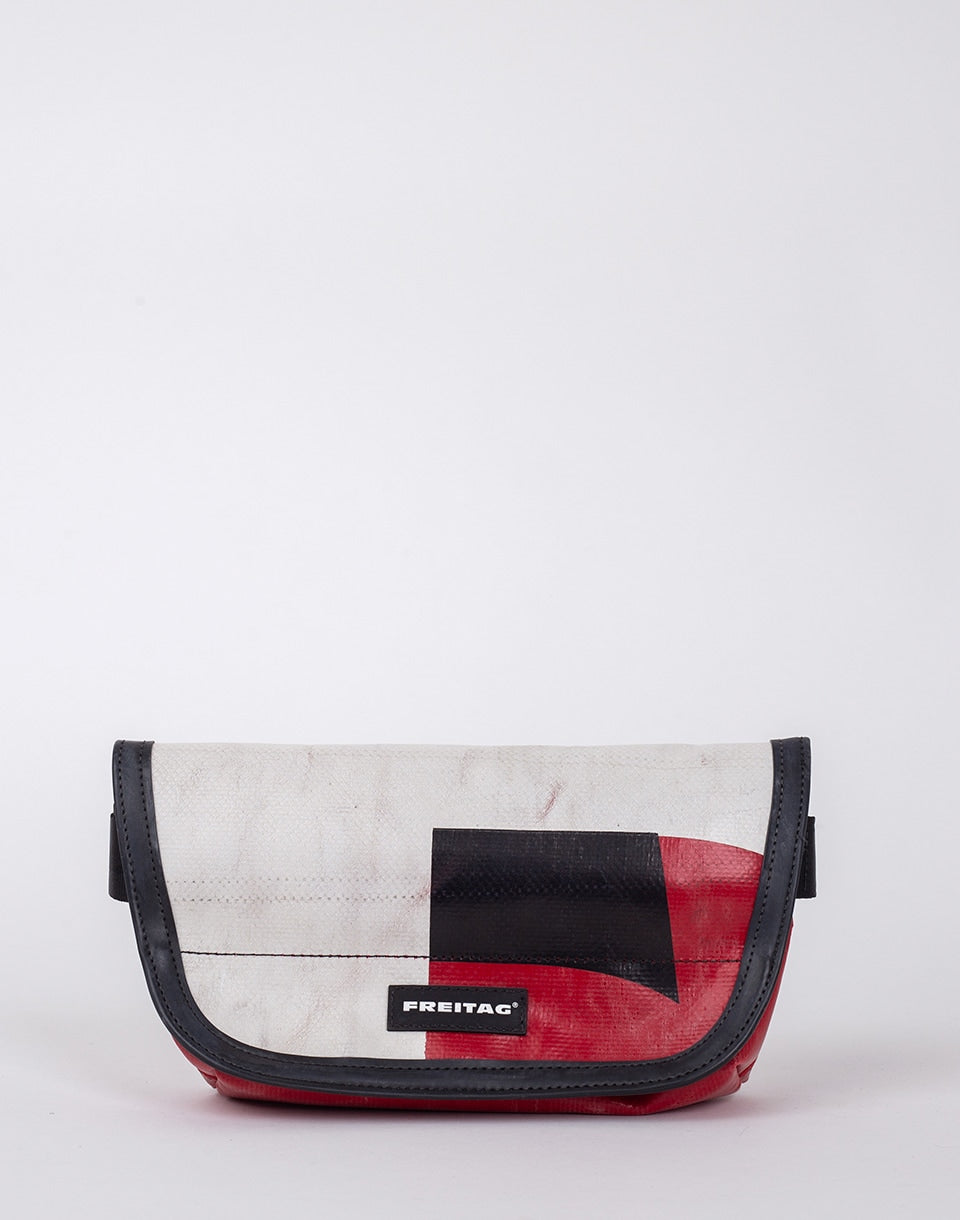 The F40 Jamie is a compact kidney that offers more than meets the eye. The minimalist design hides a practically structured interior, a comfortable shoulder strap and material that will last. Made from upcycled truck tarpaulin - so not only does each piece look different, but each has had its own journey. Just strap it on and go.