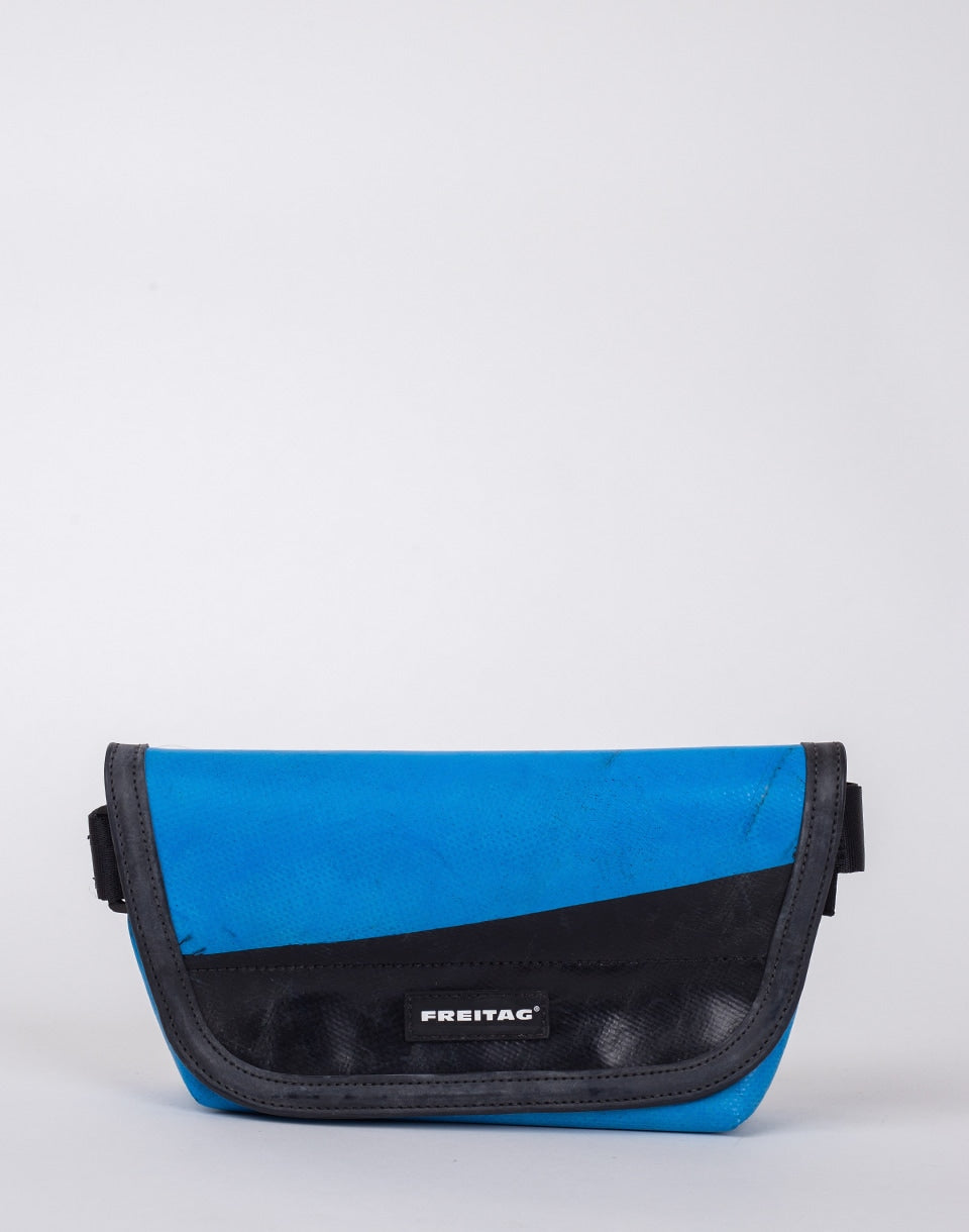 The F40 Jamie is a compact kidney that offers more than meets the eye. The minimalist design hides a practically structured interior, a comfortable shoulder strap and material that will last. Made from upcycled truck tarpaulin - so not only does each piece look different, but each has had its own journey. Just strap it on and go.