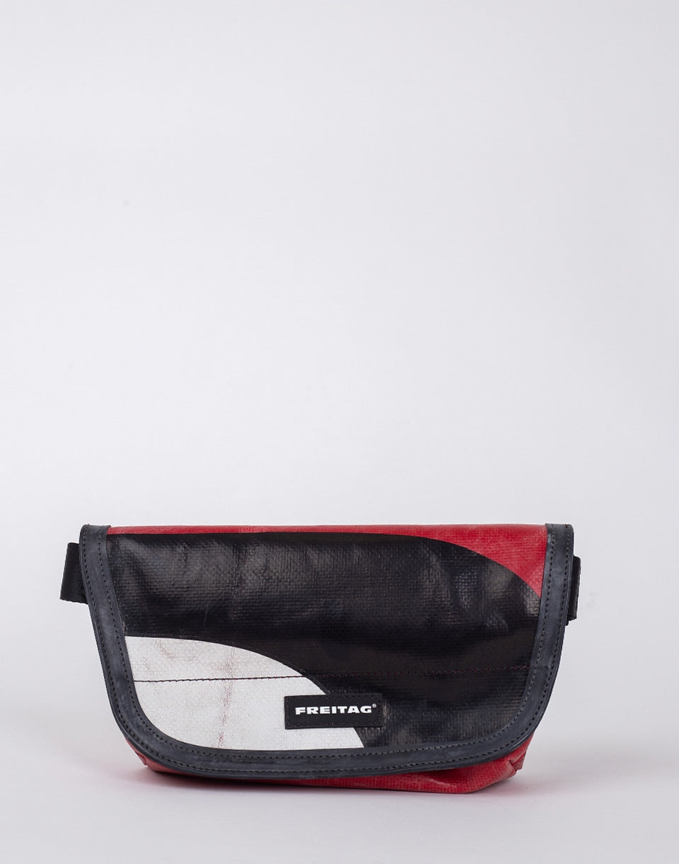 The F40 Jamie is a compact kidney that offers more than meets the eye. The minimalist design hides a practically structured interior, a comfortable shoulder strap and material that will last. Made from upcycled truck tarpaulin - so not only does each piece look different, but each has had its own journey. Just strap it on and go.