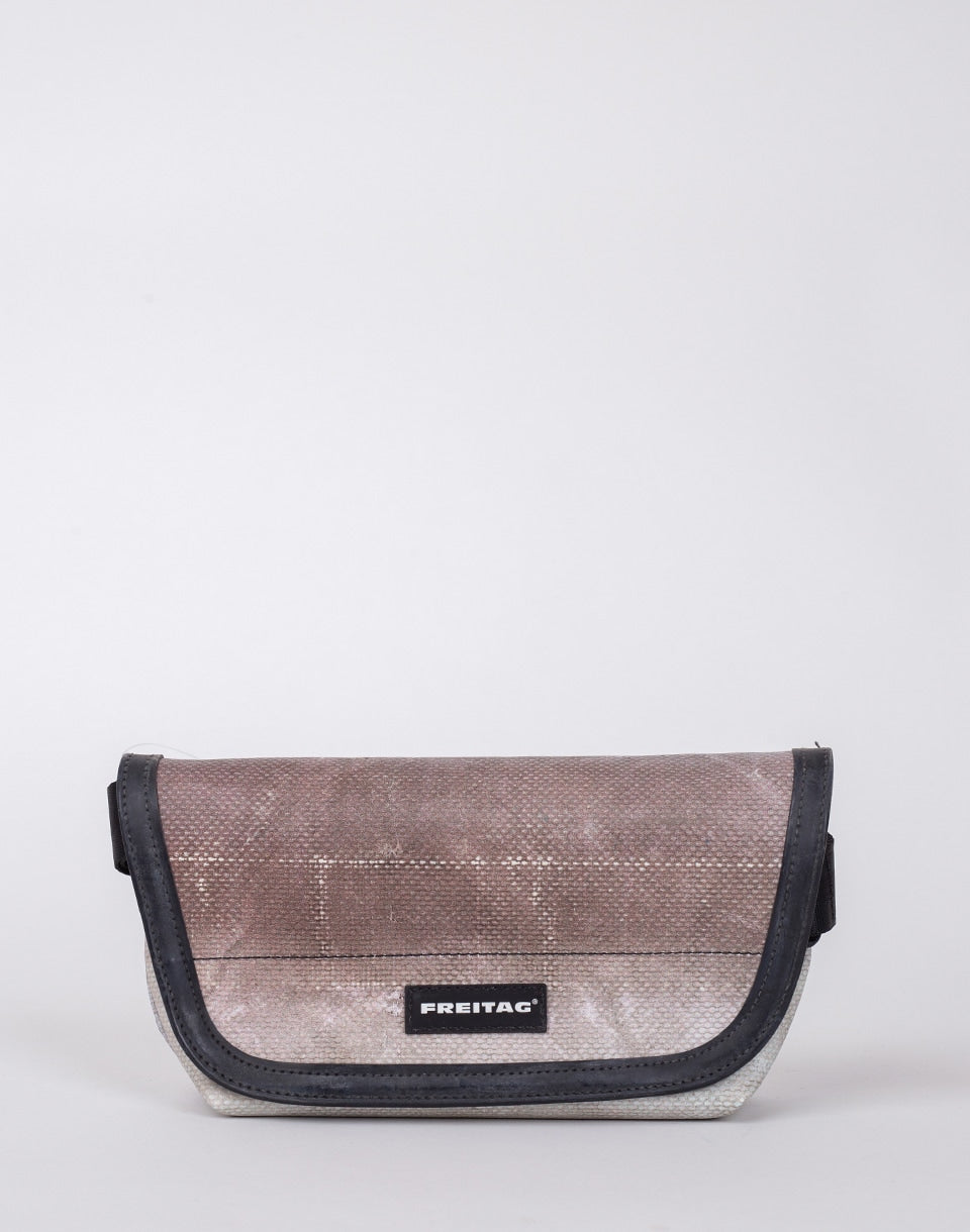 The F40 Jamie is a compact kidney that offers more than meets the eye. The minimalist design hides a practically structured interior, a comfortable shoulder strap and material that will last. Made from upcycled truck tarpaulin - so not only does each piece look different, but each has had its own journey. Just strap it on and go.