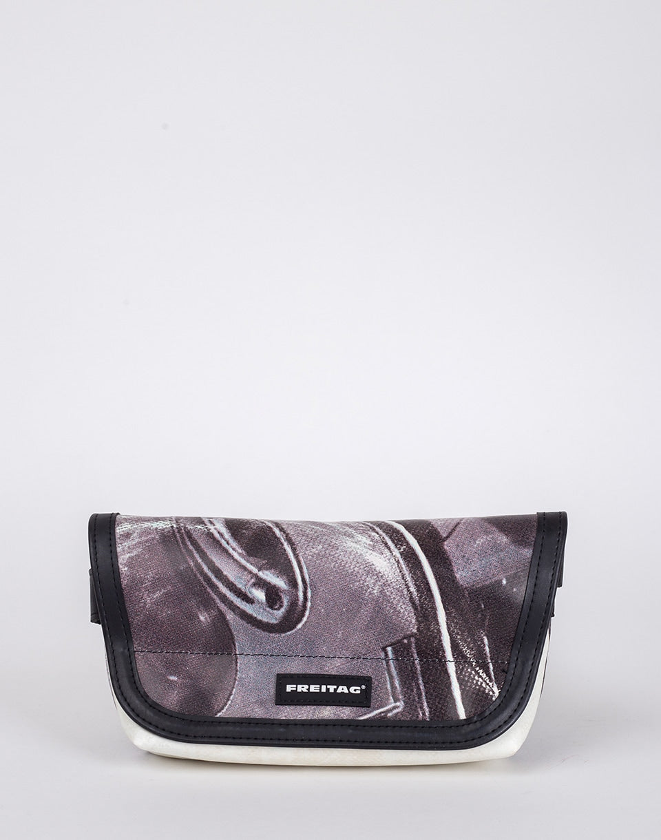 The F40 Jamie is a compact kidney that offers more than meets the eye. The minimalist design hides a practically structured interior, a comfortable shoulder strap and material that will last. Made from upcycled truck tarpaulin - so not only does each piece look different, but each has had its own journey. Just strap it on and go.