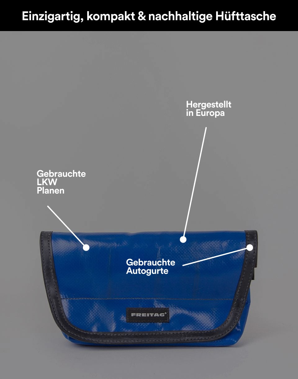 The F40 Jamie is a compact kidney that offers more than meets the eye. The minimalist design hides a practically structured interior, a comfortable shoulder strap and material that will last. Made from upcycled truck tarpaulin - so not only does each piece look different, but each has had its own journey. Just strap it on and go.