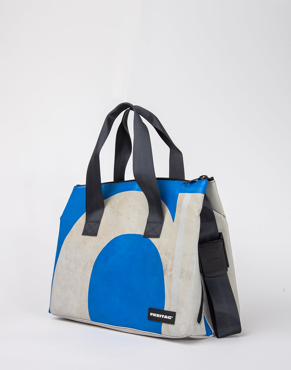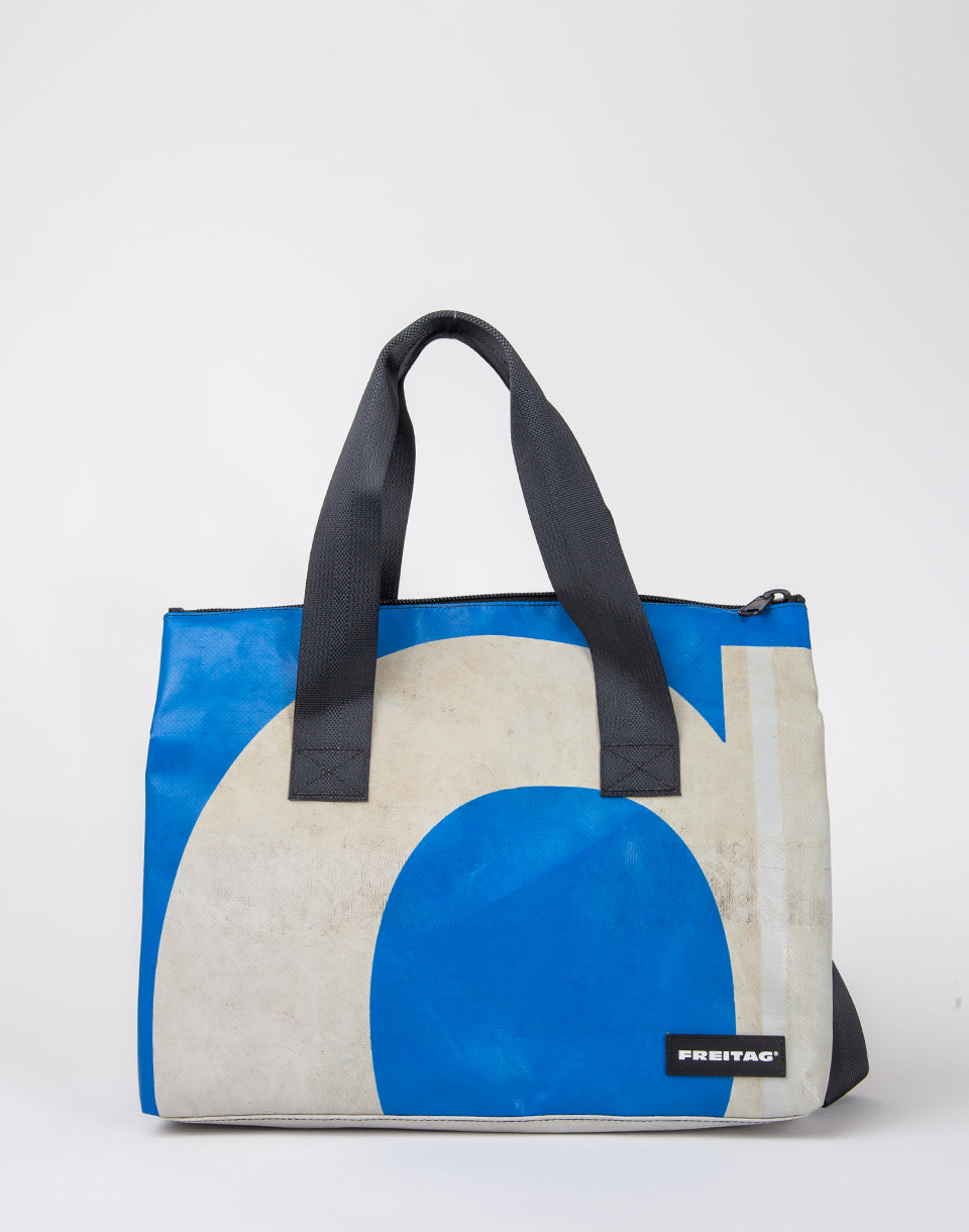 Freitag F45 Lois - Un sac de sport de taille moyenne à base de bâches de camion d'occasion et l'utilisation de ceintures de sécurité. Il plaira avec un compartiment intérieur pratique pour séparer les vêtements en sueur de ceux sèches.