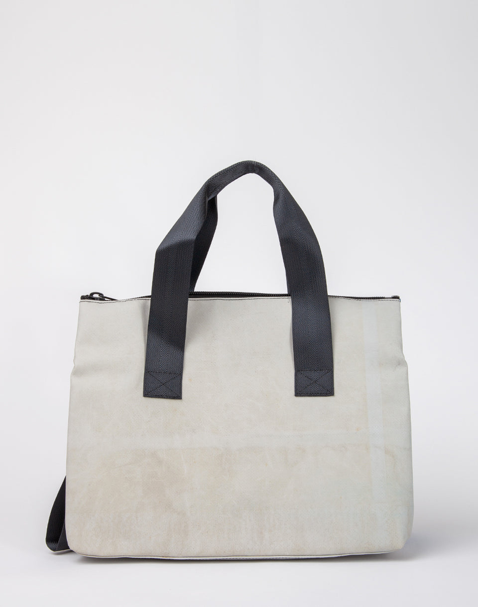 - Matériel: bâches de camion d'occasion et vieilles ceintures de sécurité