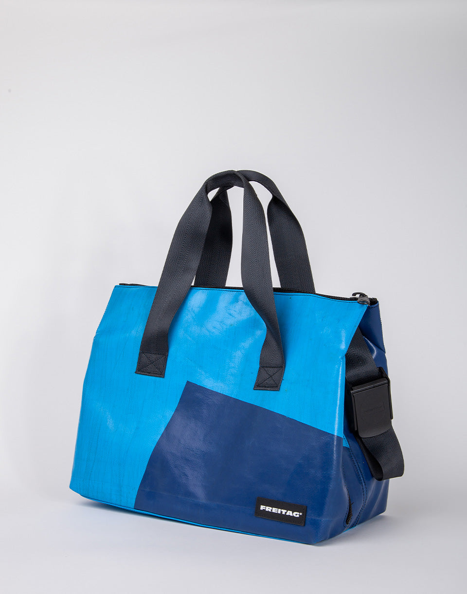 Freitag F45 Lois - Un sac de sport de taille moyenne à base de bâches de camion d'occasion et l'utilisation de ceintures de sécurité. Il plaira avec un compartiment intérieur pratique pour séparer les vêtements en sueur de ceux sèches.