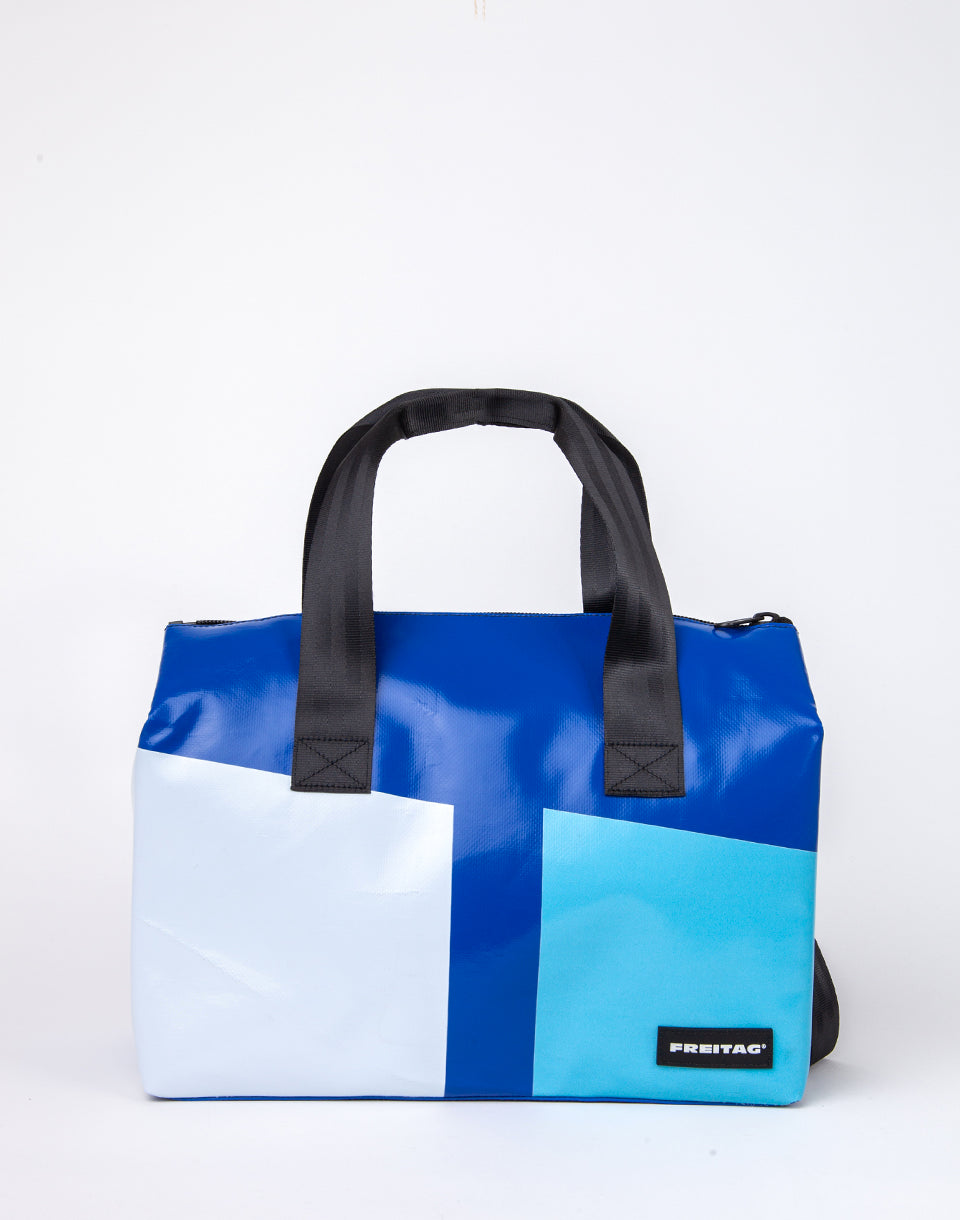 Freitag F45 Lois - Un sac de sport de taille moyenne à base de bâches de camion d'occasion et l'utilisation de ceintures de sécurité. Il plaira avec un compartiment intérieur pratique pour séparer les vêtements en sueur de ceux sèches.