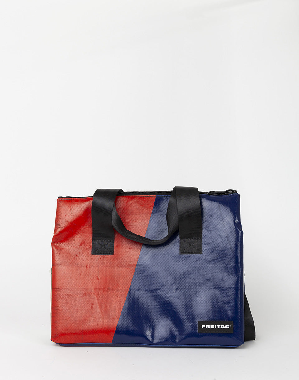 Freitag F45 Lois - Un sac de sport de taille moyenne à base de bâches de camion d'occasion et l'utilisation de ceintures de sécurité. Il plaira avec un compartiment intérieur pratique pour séparer les vêtements en sueur de ceux sèches.